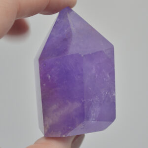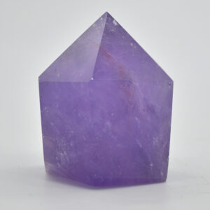 Amethyst is a purple-coloured silica mineral quartz. Other gemstones in this mineral group include Agate, Chalcedony, Citrine and Onyx. It forms as transparent, terminated crystals of all sizes in geodes, clusters, and as long single terminations.