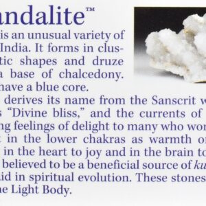 - Anandalite an unusual variety of Quartz from India. It forms in clusters, stalactitc shapes and druze layers over a base of Chalcedony with some pieces having a blue core.