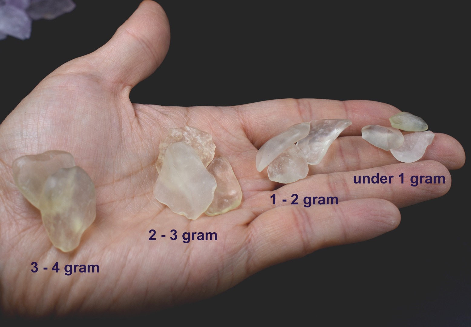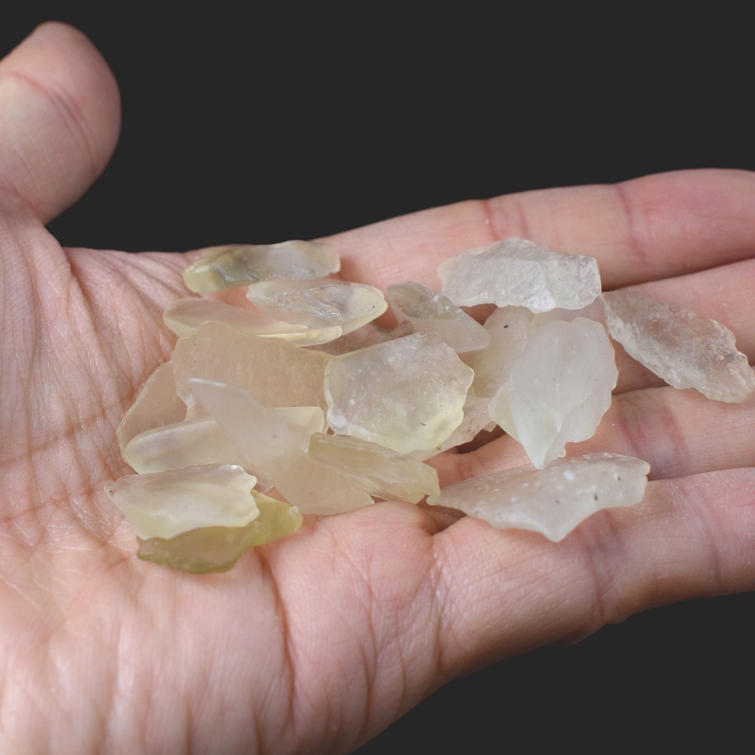 Note: Due to their age and formation, each piece has a unique shape, size, and translucency.