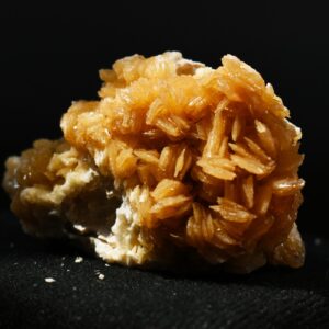 Barite / Baryte (BaSO4), a sulphate of barium (Ba) is the major industrial source of barium, and the heaviest non-metallic mineral. The barite from Rancho Palos Verdes normally displays a beautiful bladed or ‘desert rose’ habit and characterized by numerous intergrown, thin, and elongated Barite crystals that have grown outwards from a central point, creating a textured, somewhat rosette-like formation. The colour ranges from delicate and appealing off-white to deep creamy beige. The individual blades, while tightly packed, show distinct definition, and their surfaces possess a subtle, characteristic lustre, allowing light to play across the many facets.
