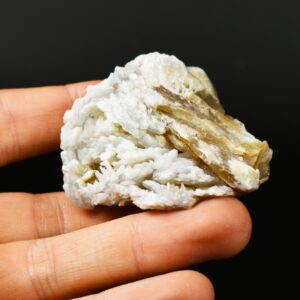 Barite / Baryte (BaSO4), a sulphate of barium (Ba) is the major industrial source of barium, and the heaviest non-metallic mineral. The barite from Rancho Palos Verdes normally displays a beautiful bladed or ‘desert rose’ habit and characterized by numerous intergrown, thin, and elongated Barite crystals that have grown outwards from a central point, creating a textured, somewhat rosette-like formation. The colour ranges from delicate and appealing off-white to deep creamy beige. The individual blades, while tightly packed, show distinct definition, and their surfaces possess a subtle, characteristic lustre, allowing light to play across the many facets.
