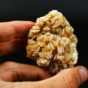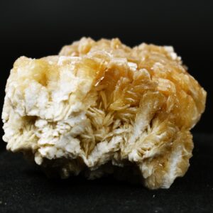 Barite / Baryte (BaSO4), a sulphate of barium (Ba) is the major industrial source of barium, and the heaviest non-metallic mineral. The barite from Rancho Palos Verdes normally displays a beautiful bladed or ‘desert rose’ habit and characterized by numerous intergrown, thin, and elongated Barite crystals that have grown outwards from a central point, creating a textured, somewhat rosette-like formation. The colour ranges from delicate and appealing off-white to deep creamy beige. The individual blades, while tightly packed, show distinct definition, and their surfaces possess a subtle, characteristic lustre, allowing light to play across the many facets.