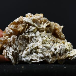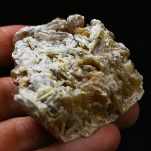 Barite / Baryte (BaSO4), a sulphate of barium (Ba) is the major industrial source of barium, and the heaviest non-metallic mineral. The barite from Rancho Palos Verdes normally displays a beautiful bladed or ‘desert rose’ habit and characterized by numerous intergrown, thin, and elongated Barite crystals that have grown outwards from a central point, creating a textured, somewhat rosette-like formation. The colour ranges from delicate and appealing off-white to deep creamy beige. The individual blades, while tightly packed, show distinct definition, and their surfaces possess a subtle, characteristic lustre, allowing light to play across the many facets.