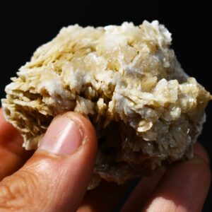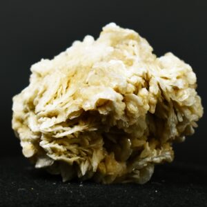 Barite / Baryte (BaSO4), a sulphate of barium (Ba) is the major industrial source of barium, and the heaviest non-metallic mineral. The barite from Rancho Palos Verdes normally displays a beautiful bladed or ‘desert rose’ habit and characterized by numerous intergrown, thin, and elongated Barite crystals that have grown outwards from a central point, creating a textured, somewhat rosette-like formation. The colour ranges from delicate and appealing off-white to deep creamy beige. The individual blades, while tightly packed, show distinct definition, and their surfaces possess a subtle, characteristic lustre, allowing light to play across the many facets.