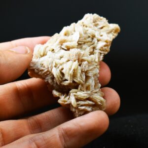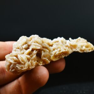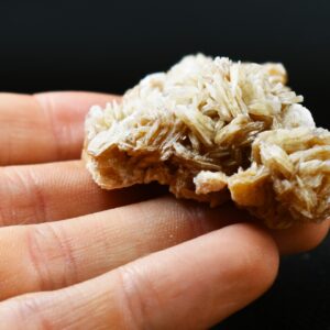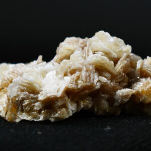 Barite / Baryte (BaSO4), a sulphate of barium (Ba) is the major industrial source of barium, and the heaviest non-metallic mineral. The barite from Rancho Palos Verdes normally displays a beautiful bladed or ‘desert rose’ habit and characterized by numerous intergrown, thin, and elongated Barite crystals that have grown outwards from a central point, creating a textured, somewhat rosette-like formation. The colour ranges from delicate and appealing off-white to deep creamy beige. The individual blades, while tightly packed, show distinct definition, and their surfaces possess a subtle, characteristic lustre, allowing light to play across the many facets.