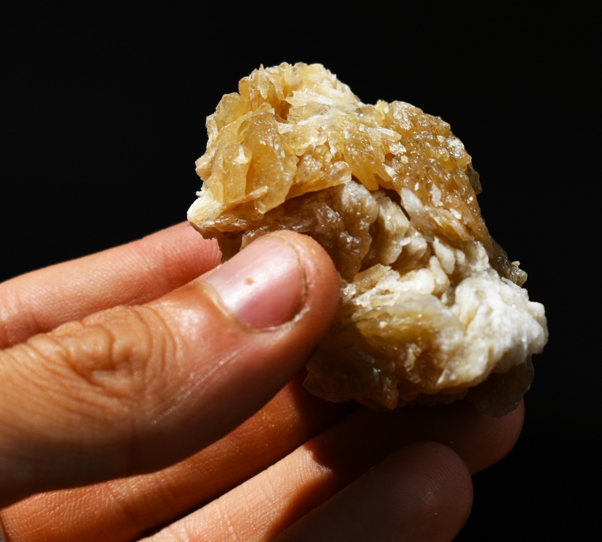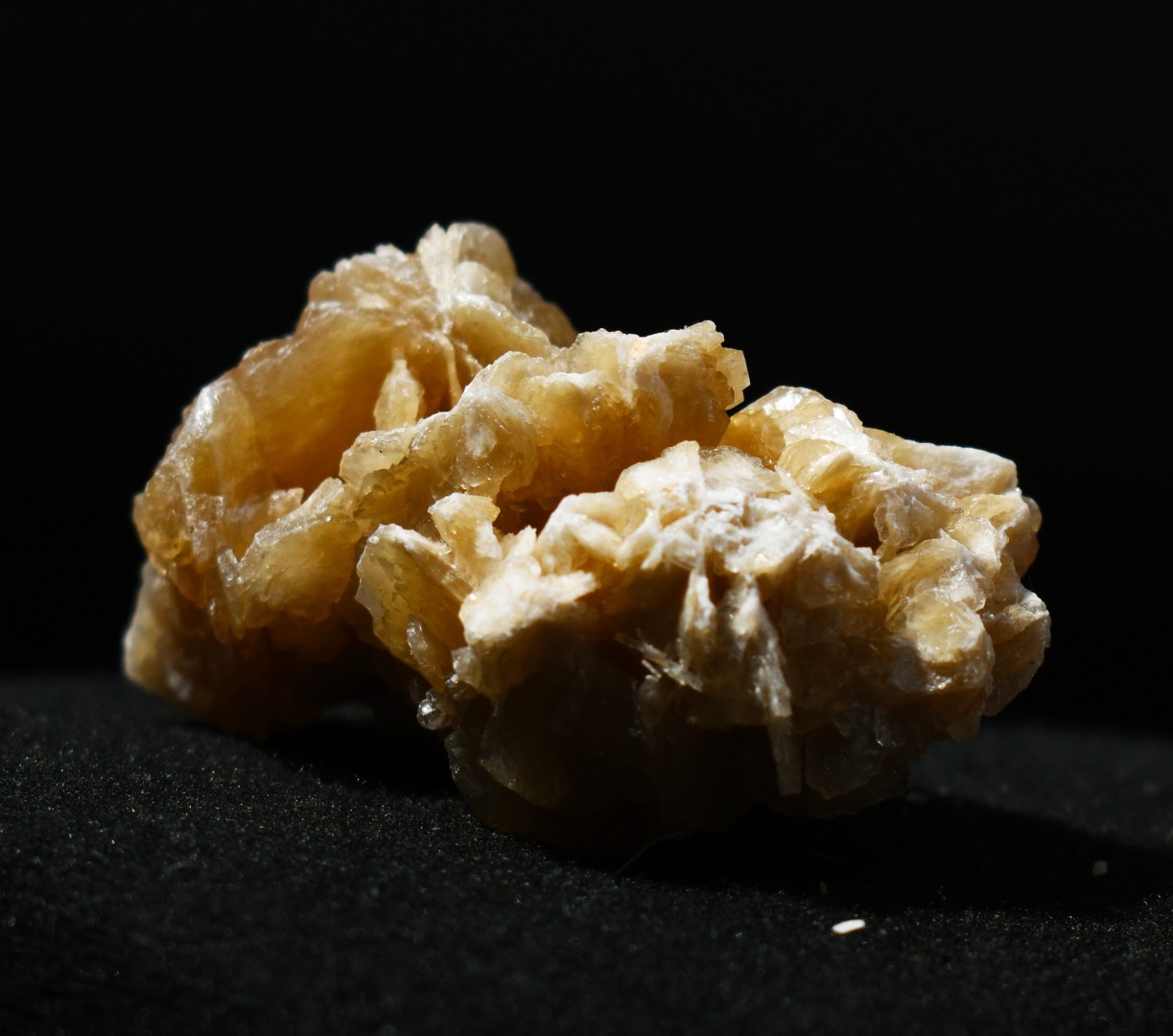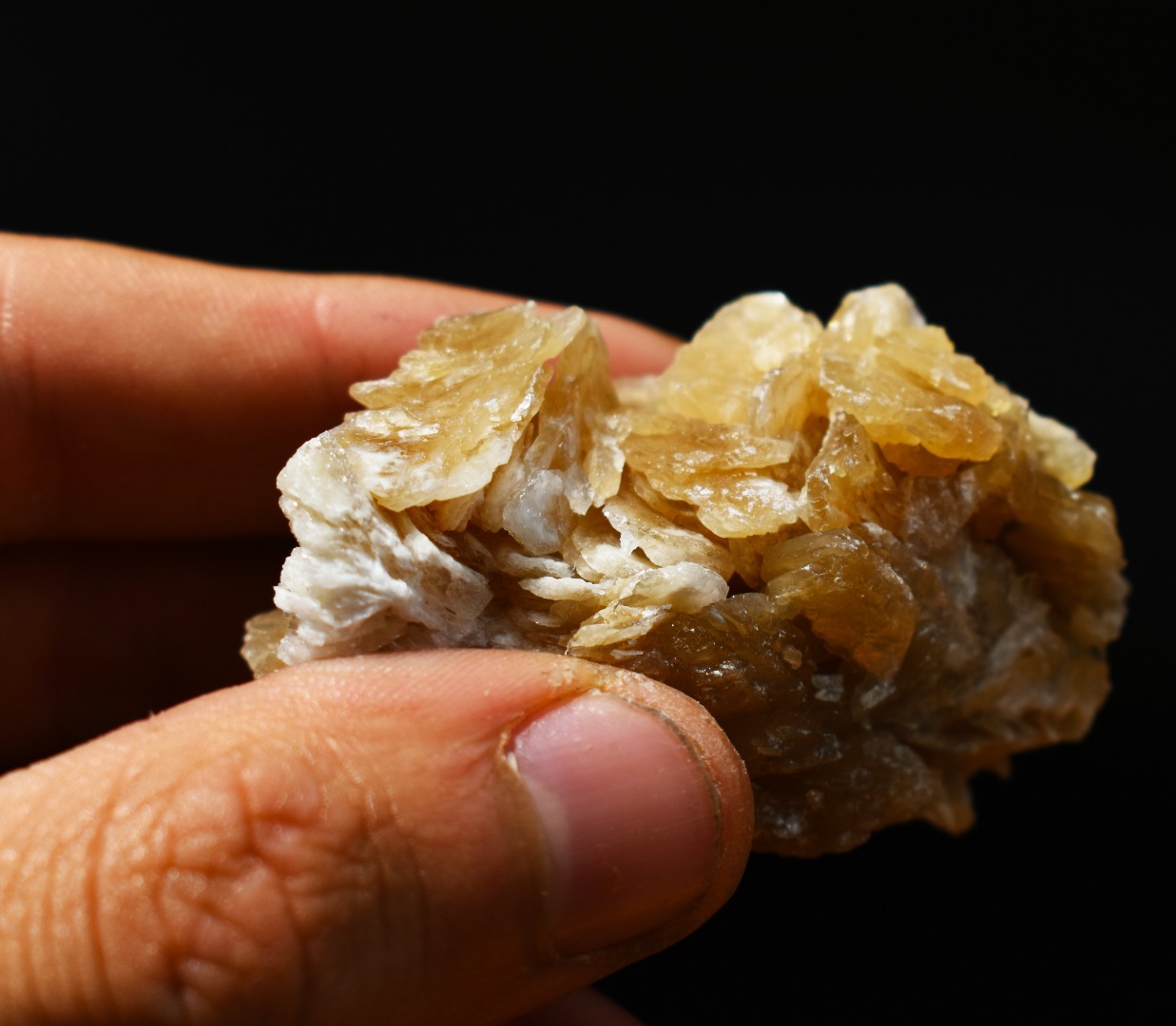 Barite / Baryte (BaSO4), a sulphate of barium (Ba) is the major industrial source of barium, and the heaviest non-metallic mineral. The barite from Rancho Palos Verdes normally displays a beautiful bladed or ‘desert rose’ habit and characterized by numerous intergrown, thin, and elongated Barite crystals that have grown outwards from a central point, creating a textured, somewhat rosette-like formation. The colour ranges from delicate and appealing off-white to deep creamy beige. The individual blades, while tightly packed, show distinct definition, and their surfaces possess a subtle, characteristic lustre, allowing light to play across the many facets.