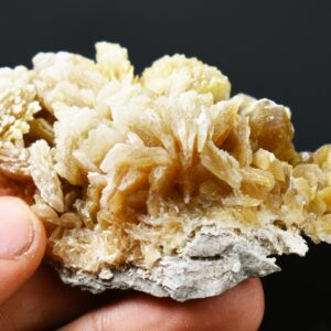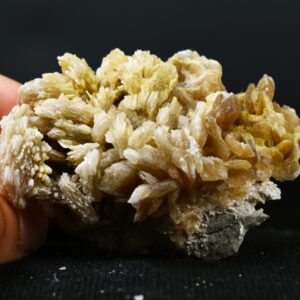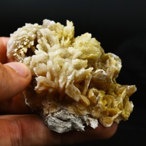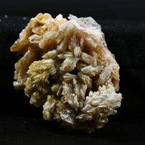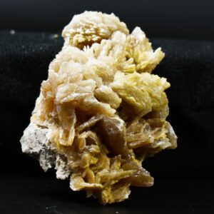 Barite / Baryte (BaSO4), a sulphate of barium (Ba) is the major industrial source of barium, and the heaviest non-metallic mineral. The barite from Rancho Palos Verdes normally displays a beautiful bladed or ‘desert rose’ habit and characterized by numerous intergrown, thin, and elongated Barite crystals that have grown outwards from a central point, creating a textured, somewhat rosette-like formation. The colour ranges from delicate and appealing off-white to deep creamy beige. The individual blades, while tightly packed, show distinct definition, and their surfaces possess a subtle, characteristic lustre, allowing light to play across the many facets.