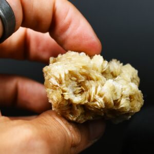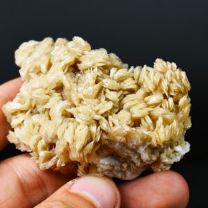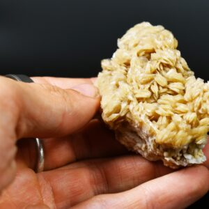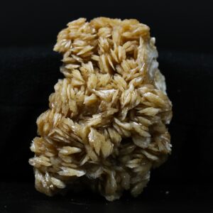 Barite / Baryte (BaSO4), a sulphate of barium (Ba) is the major industrial source of barium, and the heaviest non-metallic mineral. The barite from Rancho Palos Verdes normally displays a beautiful bladed or ‘desert rose’ habit and characterized by numerous intergrown, thin, and elongated Barite crystals that have grown outwards from a central point, creating a textured, somewhat rosette-like formation.  The colour ranges from delicate and appealing off-white to deep creamy beige. The individual blades, while tightly packed, show distinct definition, and their surfaces possess a subtle, characteristic lustre, allowing light to play across the many facets.