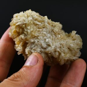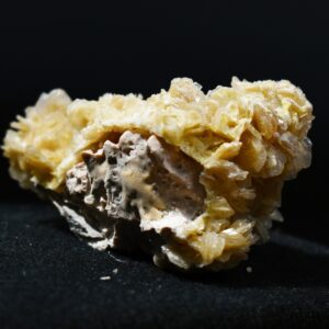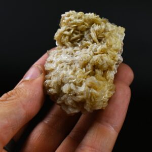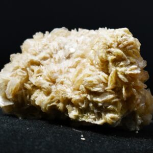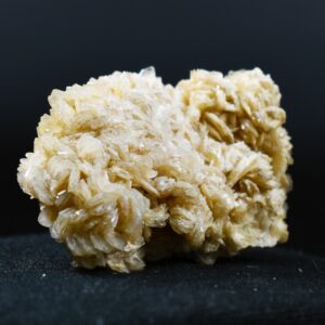 Barite / Baryte (BaSO4), a sulphate of barium (Ba) is the major industrial source of barium, and the heaviest non-metallic mineral. The barite from Rancho Palos Verdes normally displays a beautiful bladed or ‘desert rose’ habit and characterized by numerous intergrown, thin, and elongated Barite crystals that have grown outwards from a central point, creating a textured, somewhat rosette-like formation. The colour ranges from delicate and appealing off-white to deep creamy beige. The individual blades, while tightly packed, show distinct definition, and their surfaces possess a subtle, characteristic lustre, allowing light to play across the many facets.
