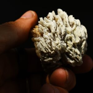 Barite / Baryte (BaSO4), a sulphate of barium (Ba) is the major industrial source of barium, and the heaviest non-metallic mineral. The barite from Rancho Palos Verdes normally displays a beautiful bladed or ‘desert rose’ habit and characterized by numerous intergrown, thin, and elongated Barite crystals that have grown outwards from a central point, creating a textured, somewhat rosette-like formation. The colour ranges from delicate and appealing off-white to deep creamy beige. The individual blades, while tightly packed, show distinct definition, and their surfaces possess a subtle, characteristic lustre, allowing light to play across the many facets.