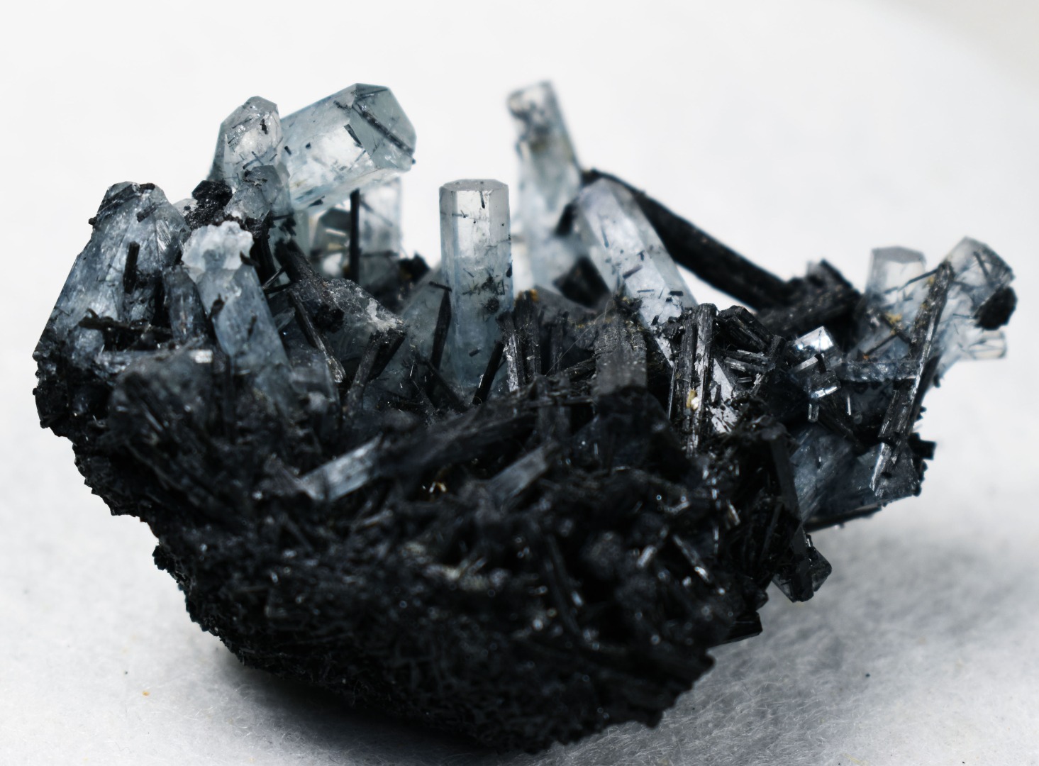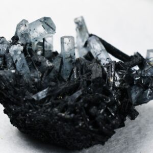 Beryl var. Aquamarine with Schorl Black Tourmaline Raw Cluster Specimen
