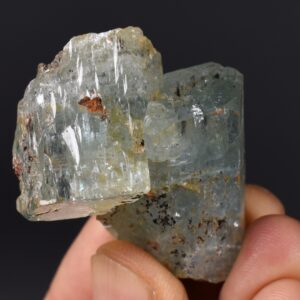 Aquamarine is the blue to green-blue gemstone variety of beryl. The name aquamarine comes from two Latin words aqua marinus meaning “water of the sea”. Aquamarine can be found growing within Siderite. This is a mineral of primarily iron carbonate and found in the Erongo Mountains of Namibia. It can also grow within Black Tourmaline and Feldspar.