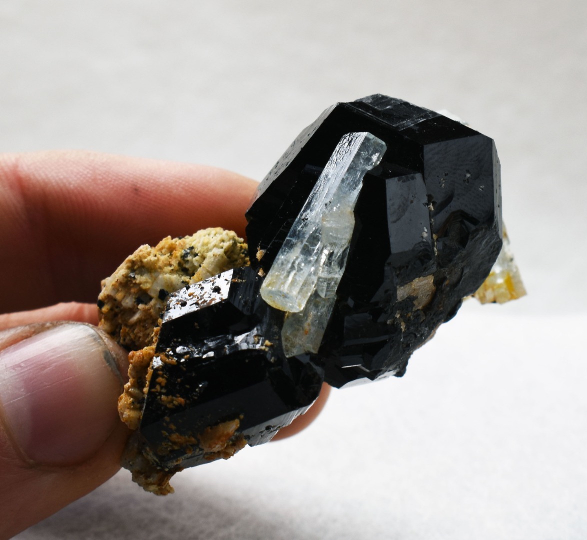 Aquamarine is the blue to green-blue gemstone variety of beryl. The name aquamarine comes from two Latin words aqua marinus meaning “water of the sea”. Aquamarine can be found growing within Siderite. This is a mineral of primarily iron carbonate and found in the Erongo Mountains of Namibia. It can also grow within Black Tourmaline and Feldspar.