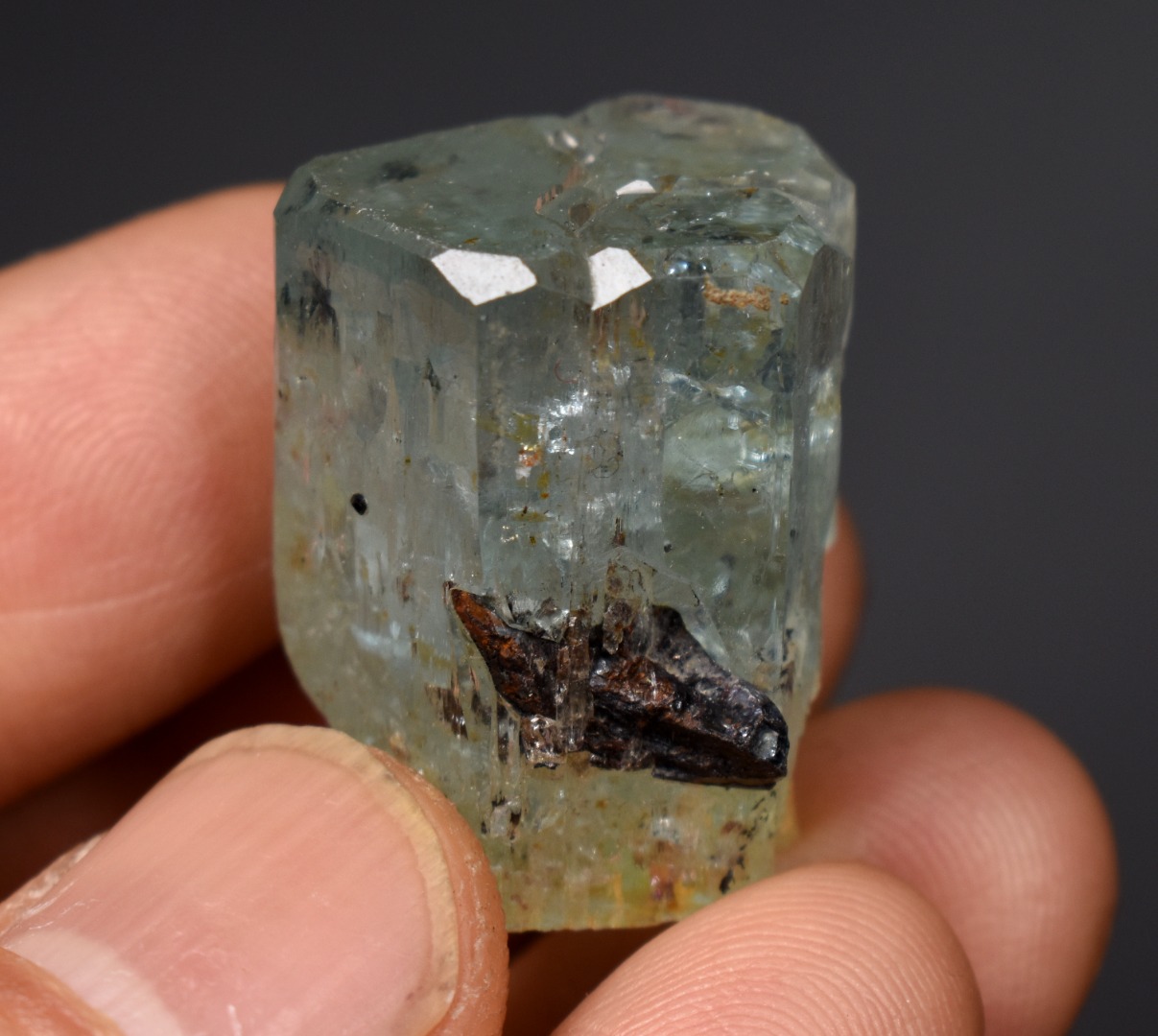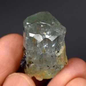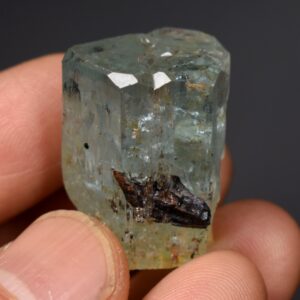 Aquamarine is the blue to green-blue gemstone variety of beryl. The name aquamarine comes from two Latin words aqua marinus meaning “water of the sea”. Aquamarine can be found growing within Siderite. This is a mineral of primarily iron carbonate and found in the Erongo Mountains of Namibia. It can also grow within Black Tourmaline and Feldspar.