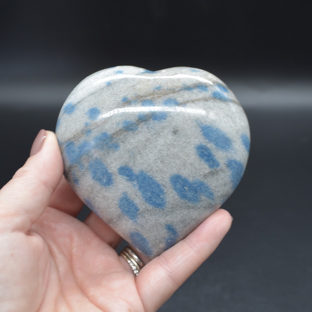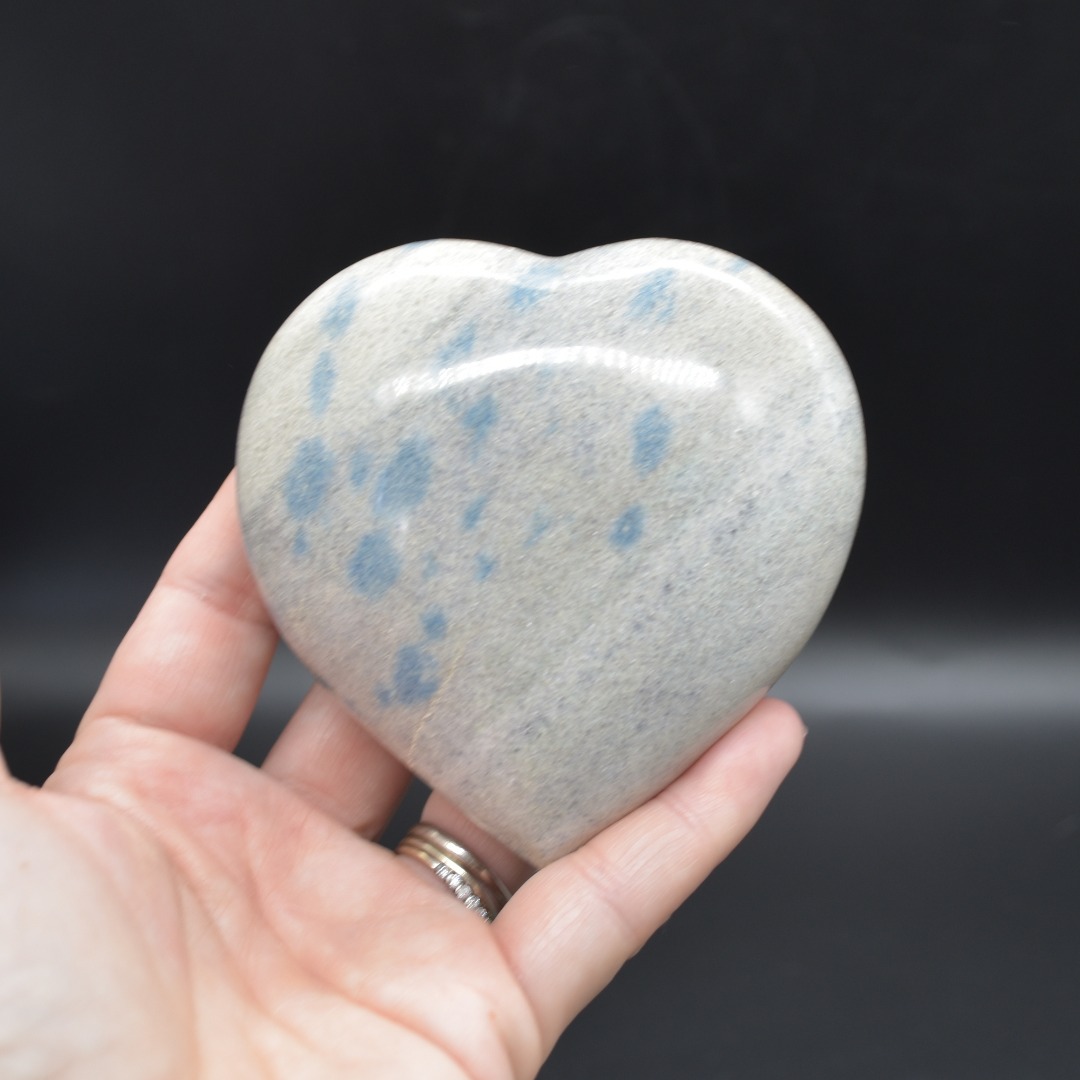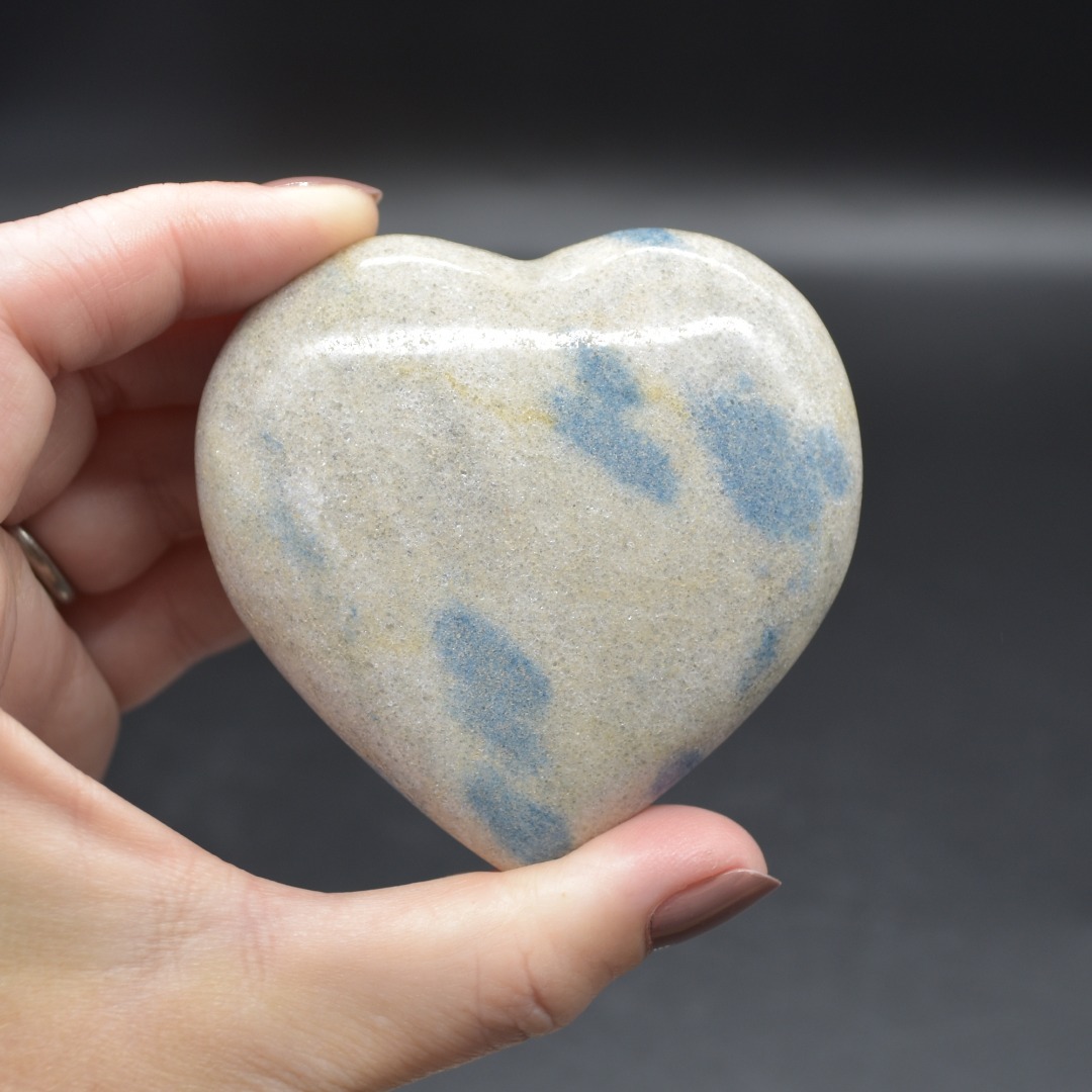 - Quantity: 1 Blue Apatite in Cleavelandite Heart will be carefully hand selected at random from our beautiful stock. Each crystal has its own unique colour and pattern.