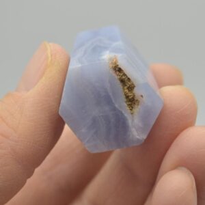 Blue Lace Agate is one of the rarest crystals because it can only found in one mine in Namibia. The name comes from the white lines across the stone which create a lace like pattern.