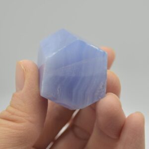 Blue Lace Agate is one of the rarest crystals because it can only found in one mine in Namibia. The name comes from the white lines across the stone which create a lace like pattern.