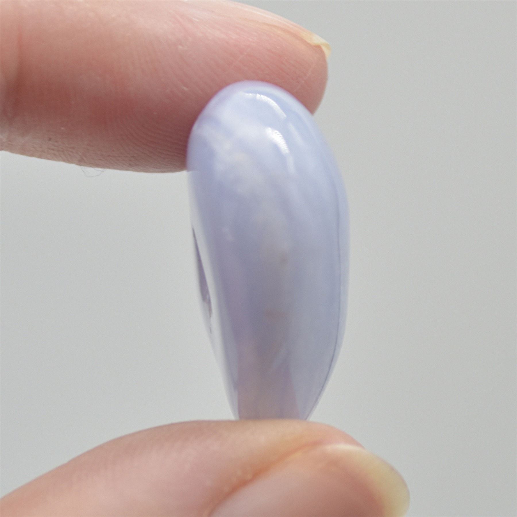 Natural inclusions, cracks and pockets are all visible and all part of the natural stone. Blue Lace Agate is one of the rarest crystals because it can only found in one mine in Namibia. The name comes from the white lines across the stone which create a lace like pattern. Blue Lace Agate Metaphysical Properties include: