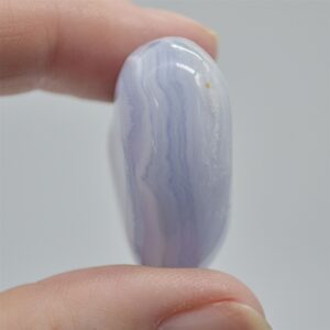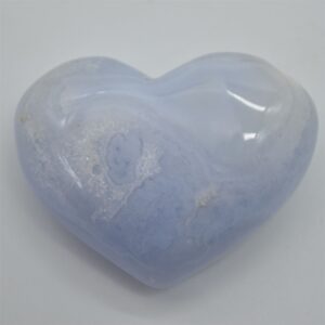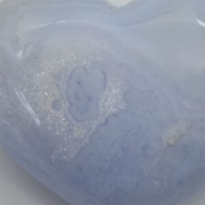 Natural inclusions, cracks and pockets are all visible and all part of the natural stone. Blue Lace Agate is one of the rarest crystals because it can only found in one mine in Namibia. The name comes from the white lines across the stone which create a lace like pattern. Blue Lace Agate Metaphysical Properties include: