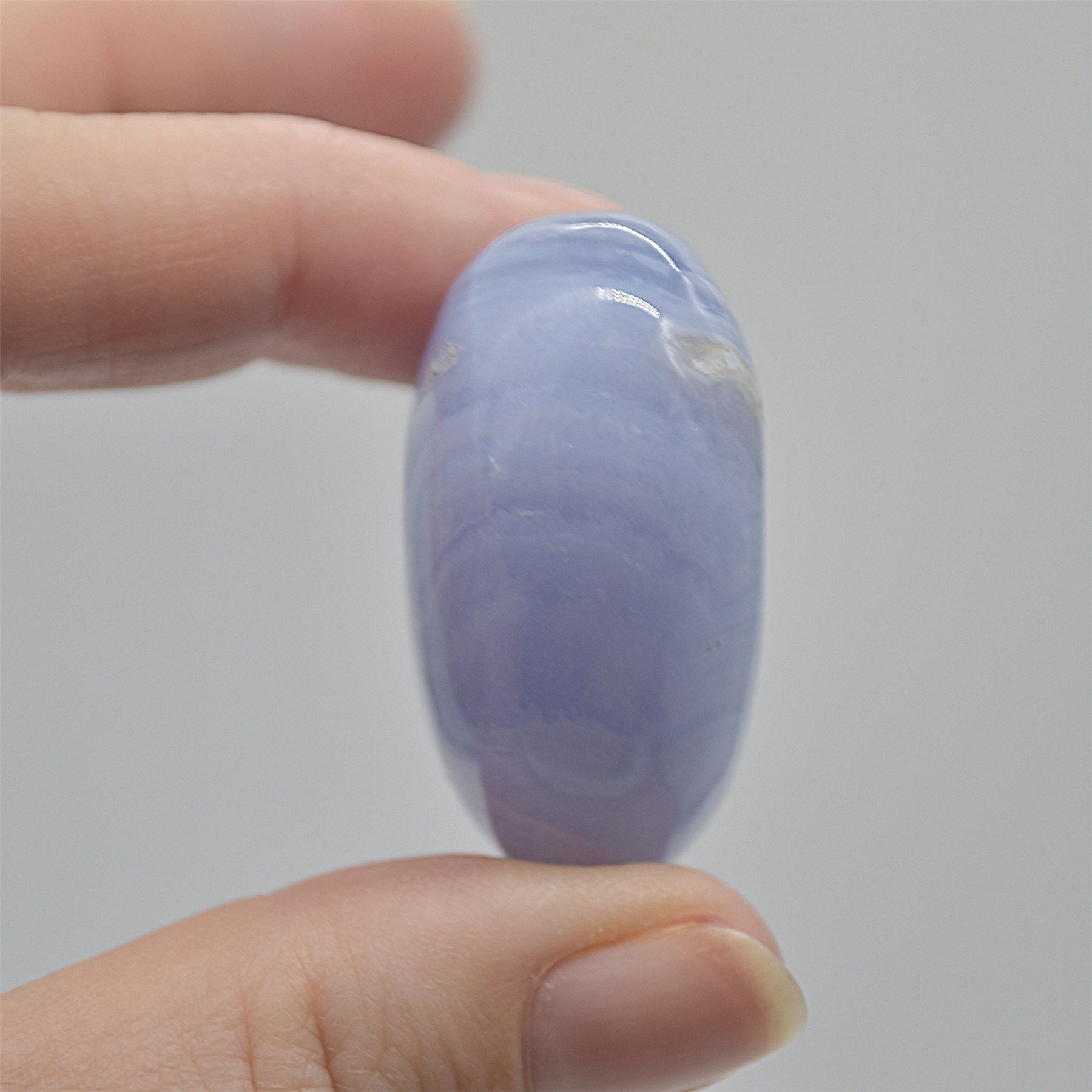 Natural inclusions, cracks and pockets are all visible and all part of the natural stone. Blue Lace Agate is one of the rarest crystals because it can only found in one mine in Namibia. The name comes from the white lines across the stone which create a lace like pattern. Blue Lace Agate Metaphysical Properties include: