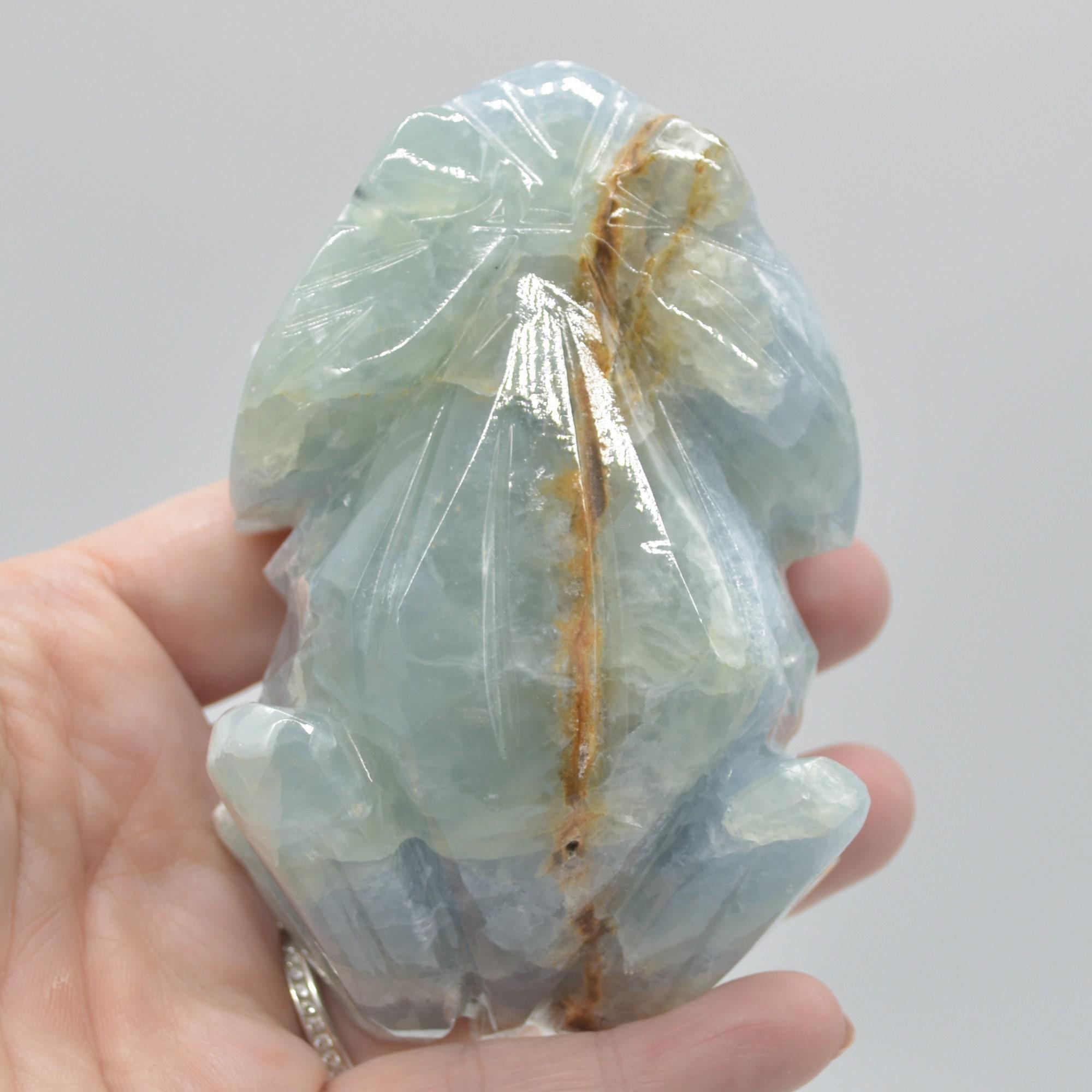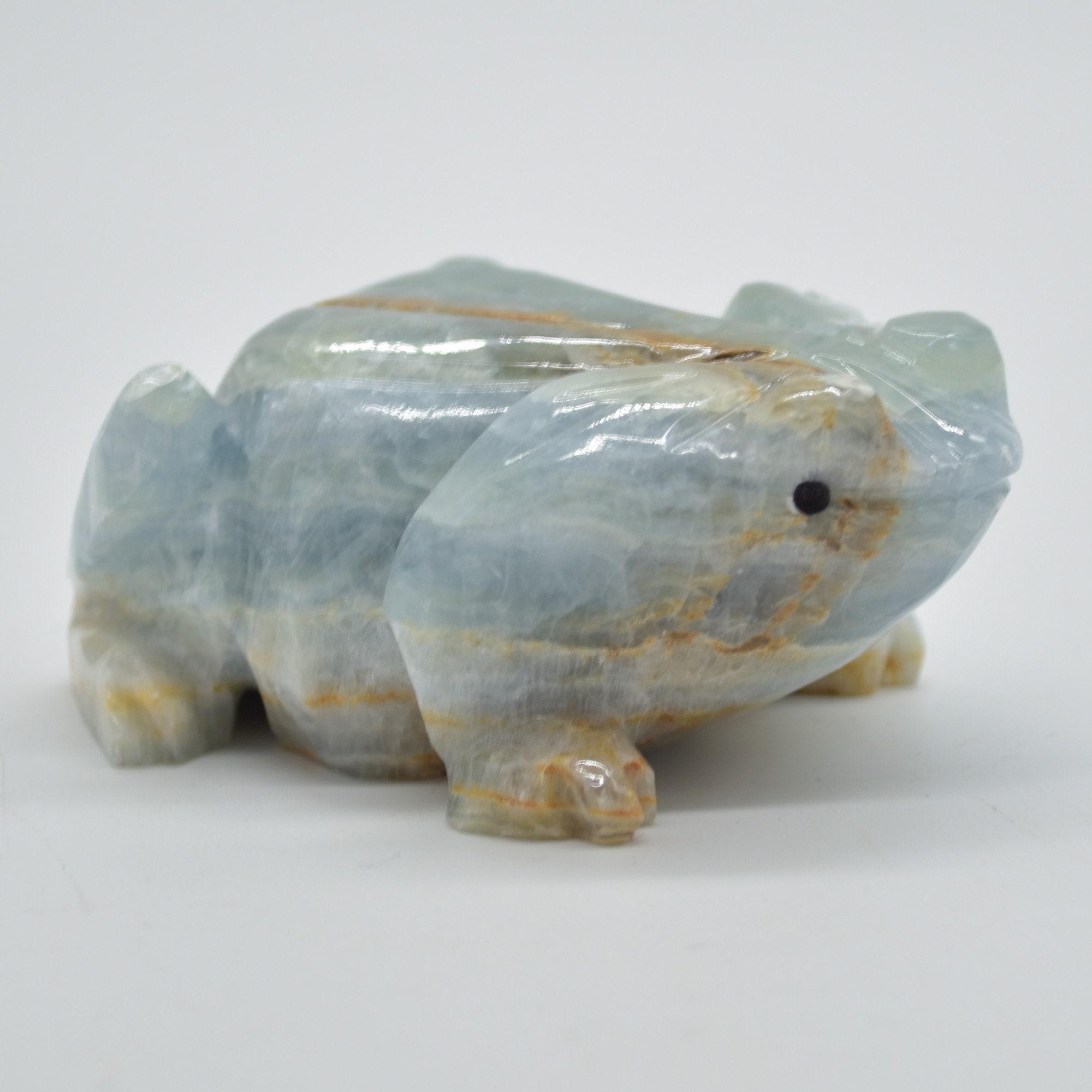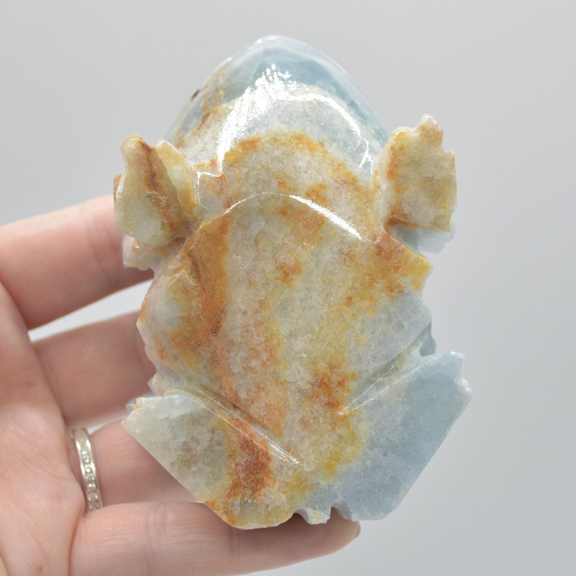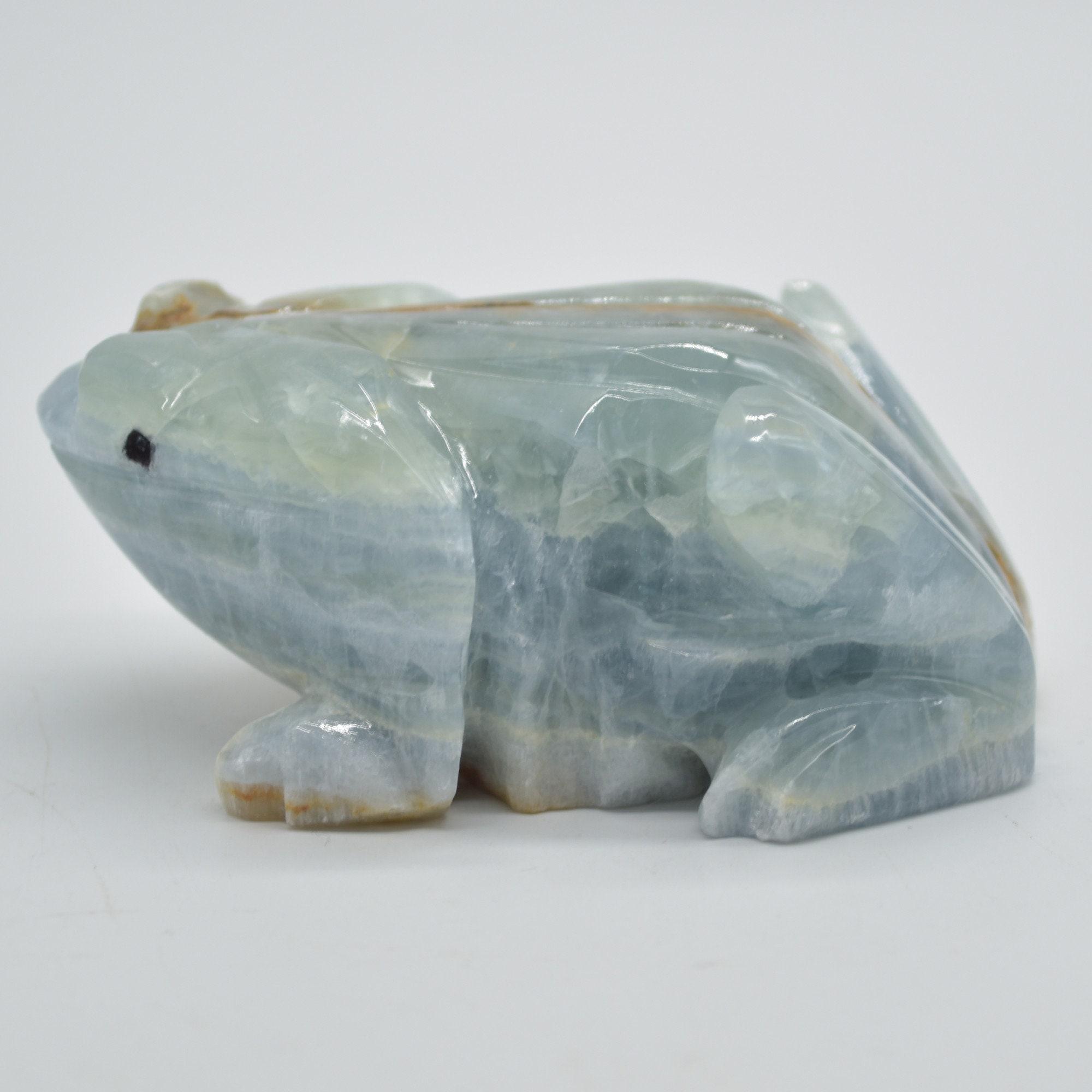 Natural polished Blue Onyx (Lemurian Aquatine Calcite) crystal carved Frog / Toad