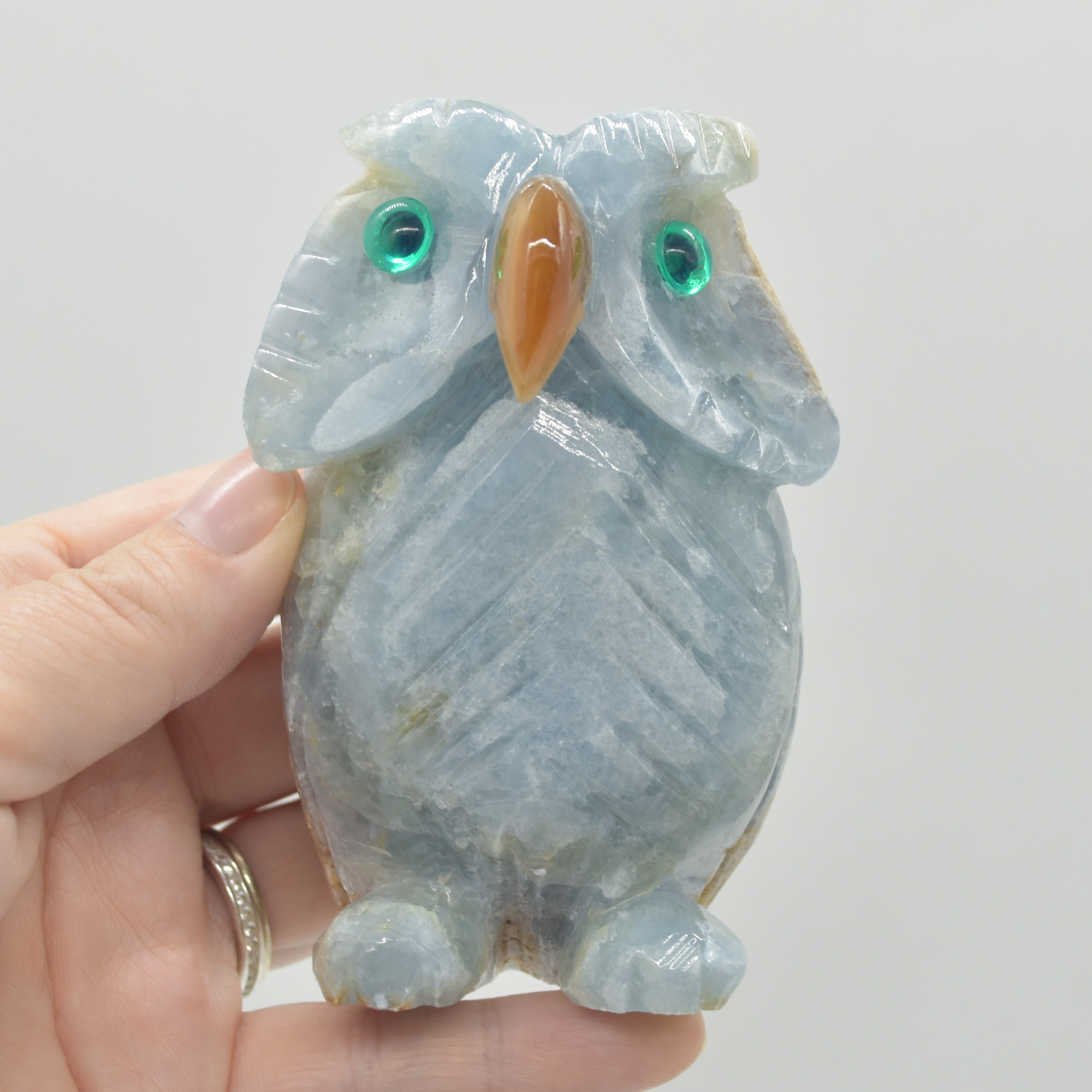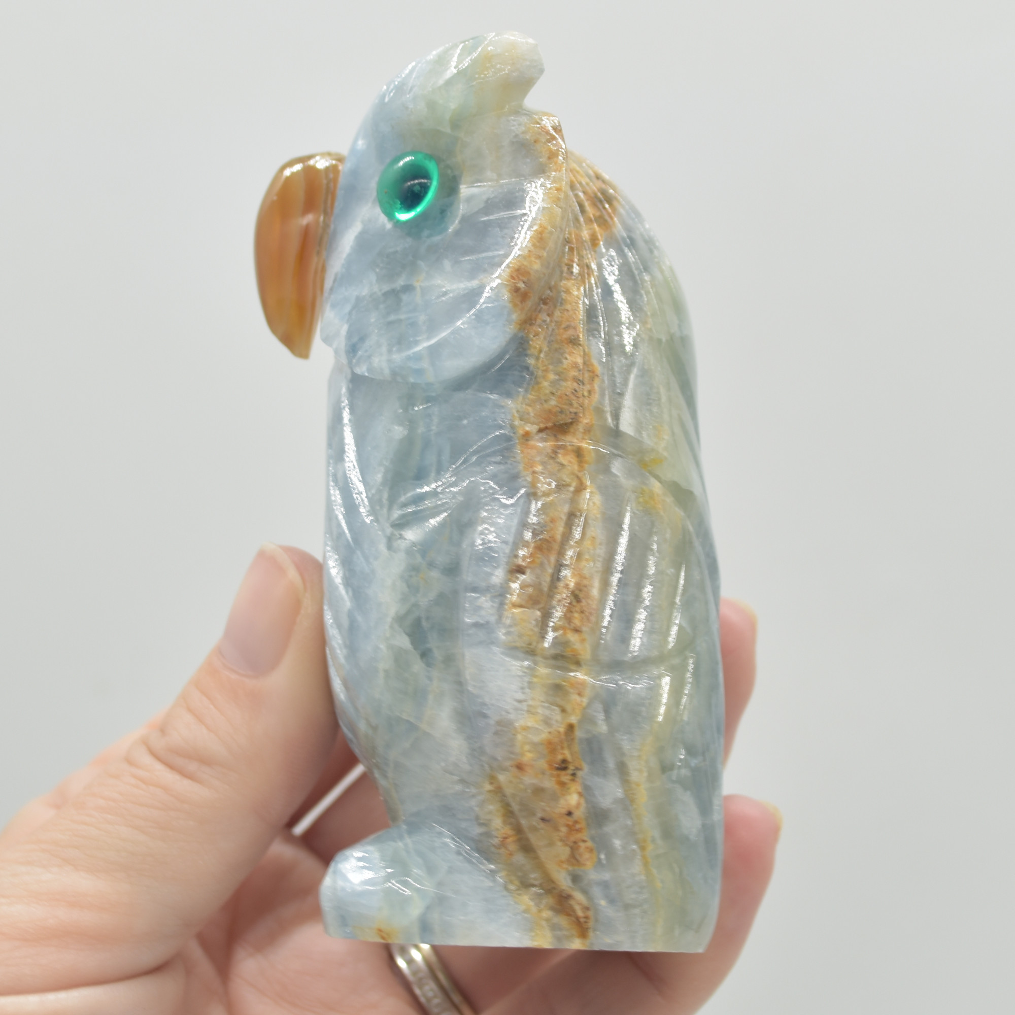 Blue Onyx (Lemurian Aquatine Calcite) Crystal Carved Owl – 250 grams #10
