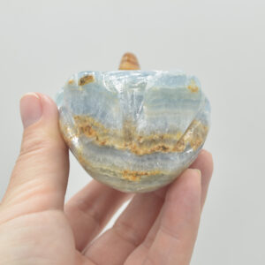 Blue Onyx, otherwise known as Lemurian Aquatine Calcite, is blue coloured variety of onyx which is a variety of chalcedony. Chalcedony is distinguished from agate by its frankly banded structure. Onyx often reminds us of a black colours of stones, considering that black onyx is one of the most popular varieties of the Onyx stones.