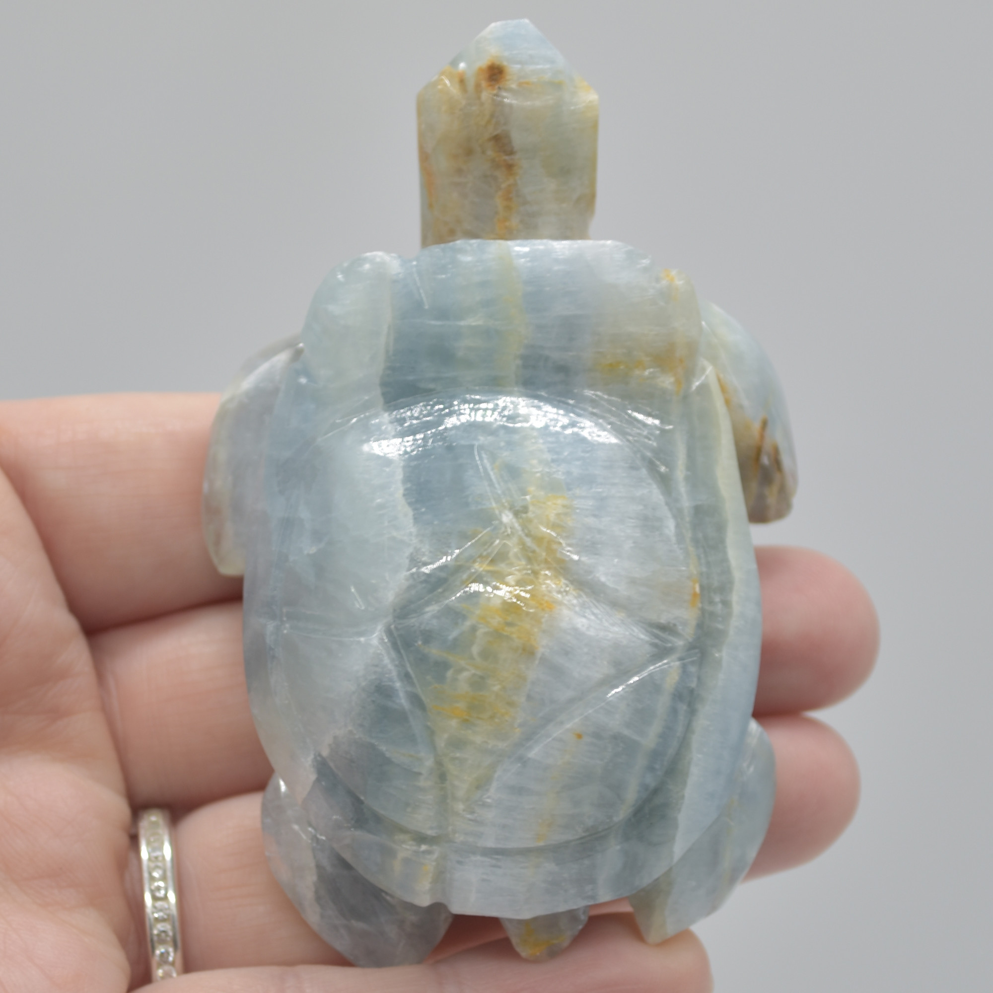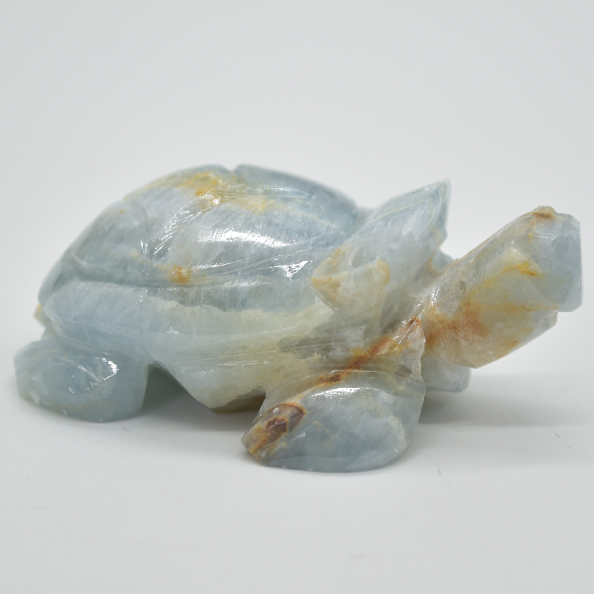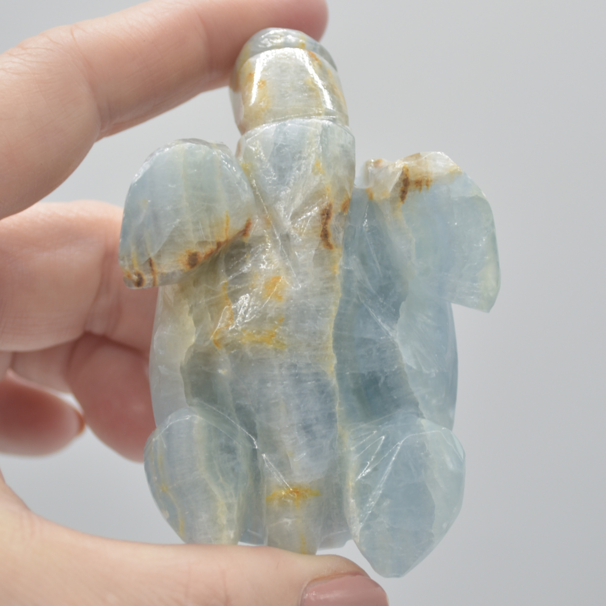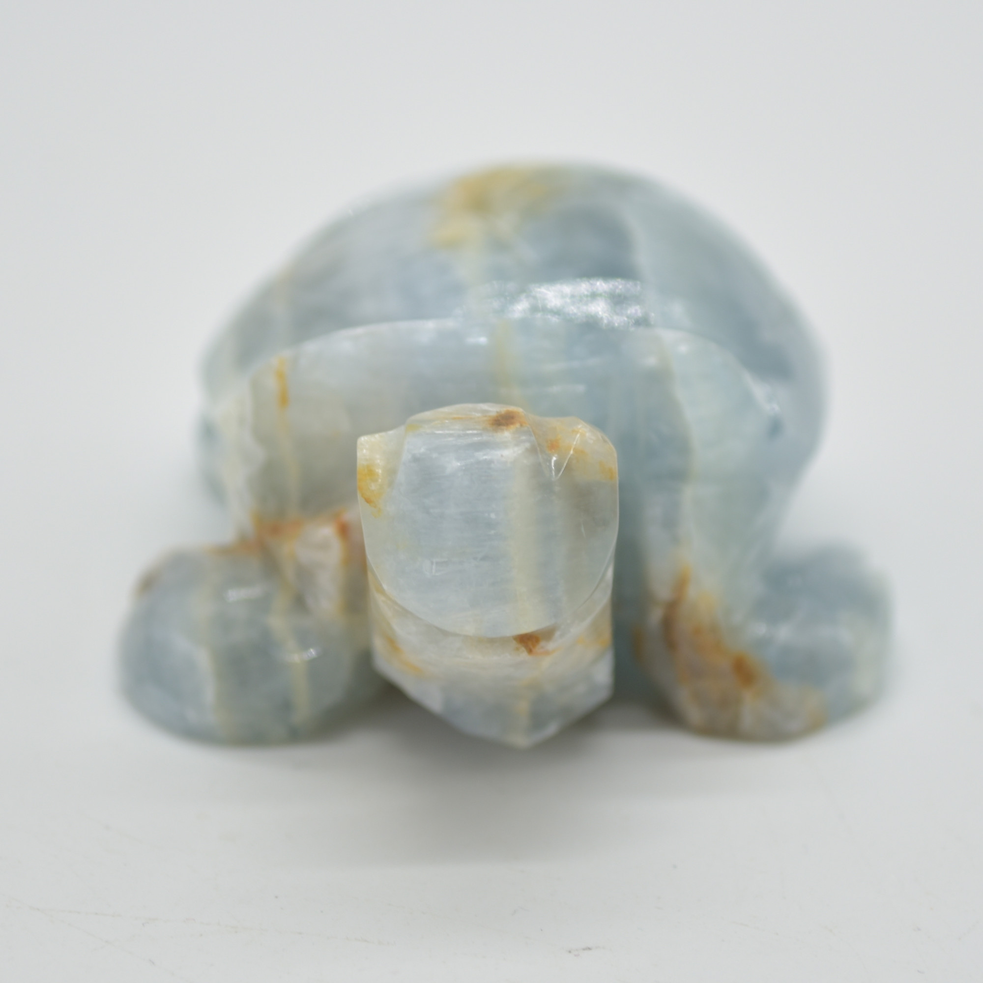 Natural polished Blue Onyx (Lemurian Aquatine Calcite) crystal carved Turtle