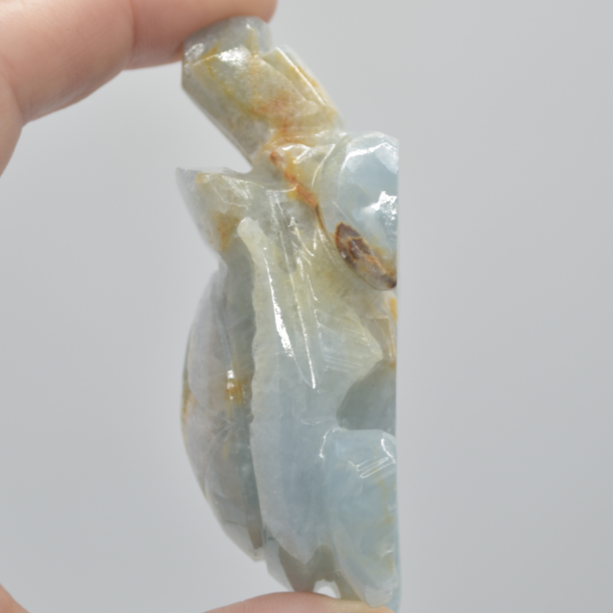 Blue Onyx (Lemurian Aquatine Calcite) Crystal Carved Owl – 250 grams #10