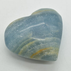 Blue Onyx Lemerian Aquatine Calcite Crystal Puffy Heart – 132 grams – 5.5cm #01