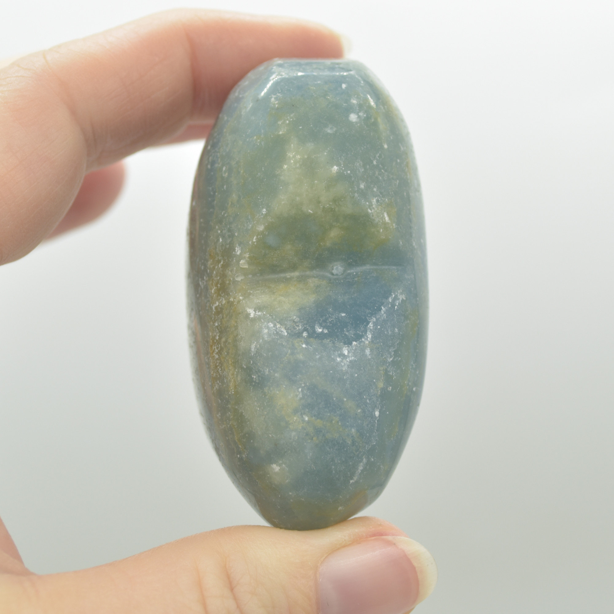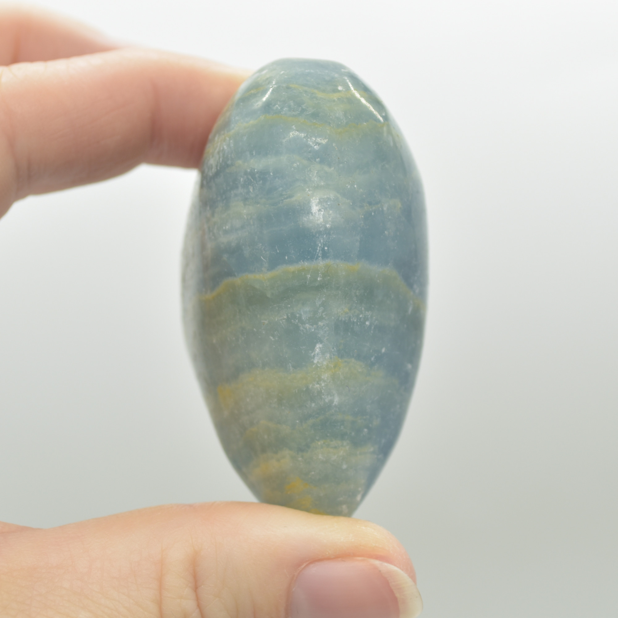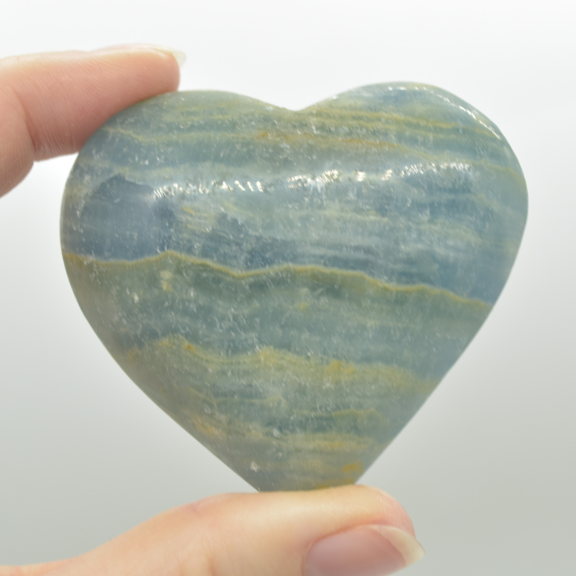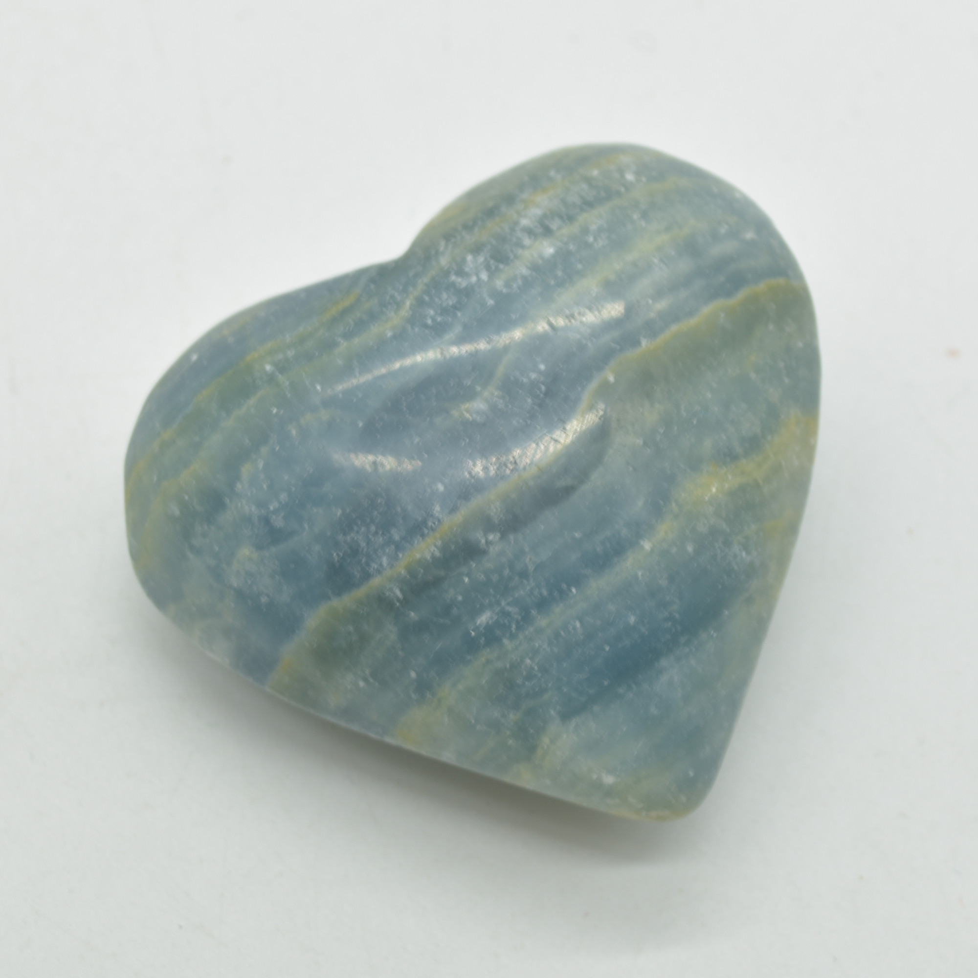 Blue Onyx Lemerian Aquatine Calcite Crystal Puffy Heart – 136 grams – 5.7cm #02