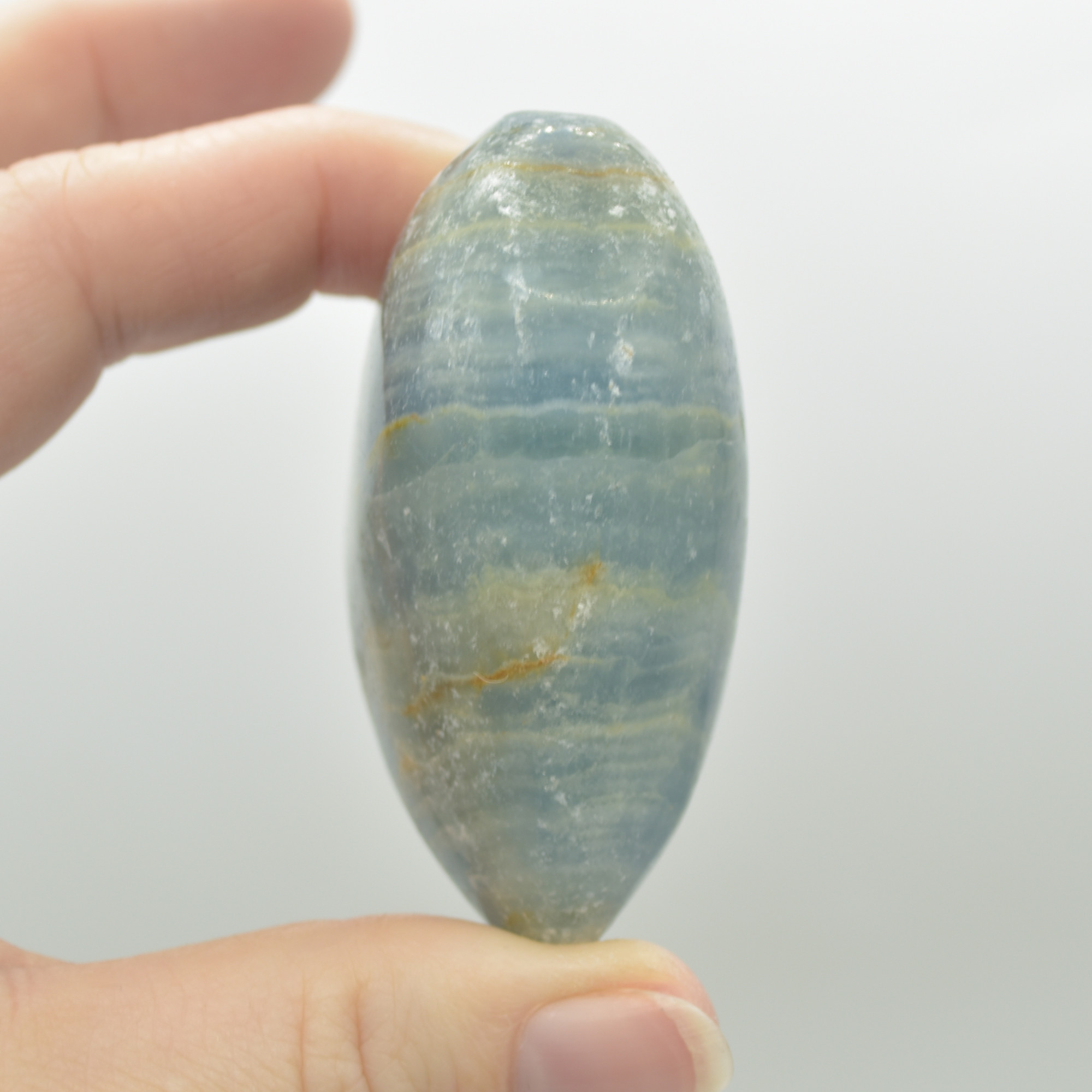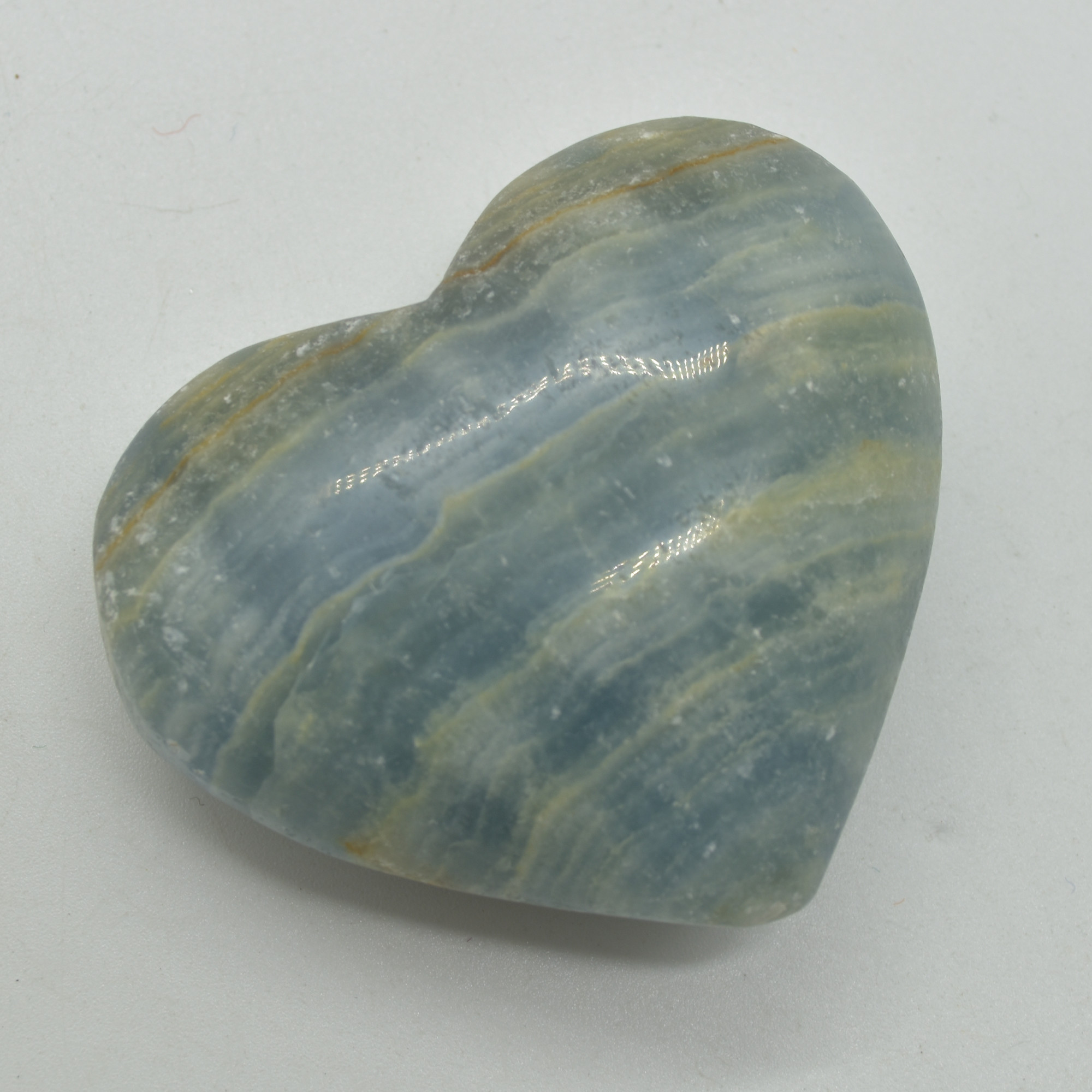 Blue Onyx Lemerian Aquatine Calcite Crystal Puffy Heart – 155 grams – 6cm #03