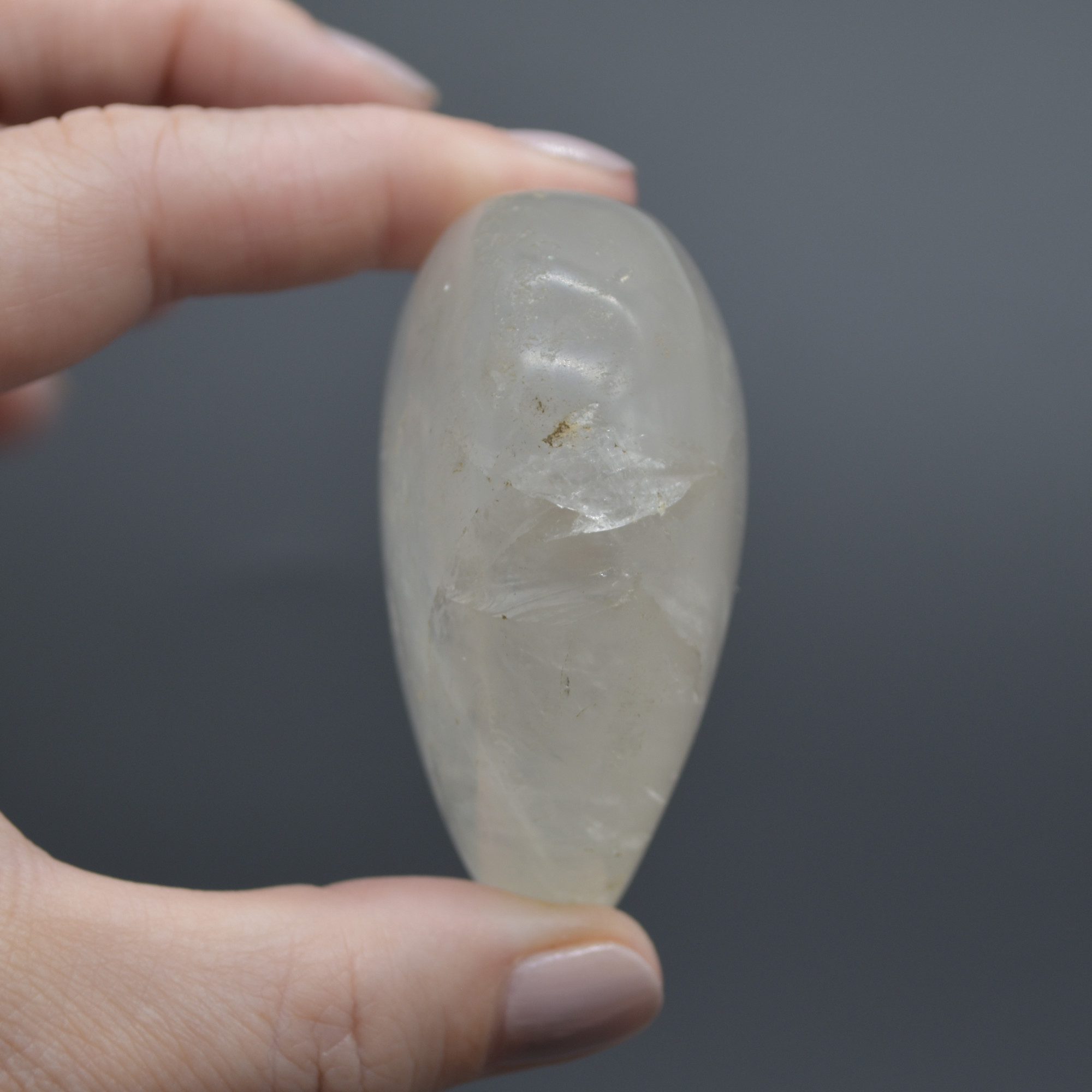 While some specimens are fairly blue, others look brownish, greyish and purplish muddle of colours, or even milky. Blue rose quartz can often be associated with a stone that looks a bit like girasol quartz as well as rose quartz. It may even appear to be different colours depending on the angle.