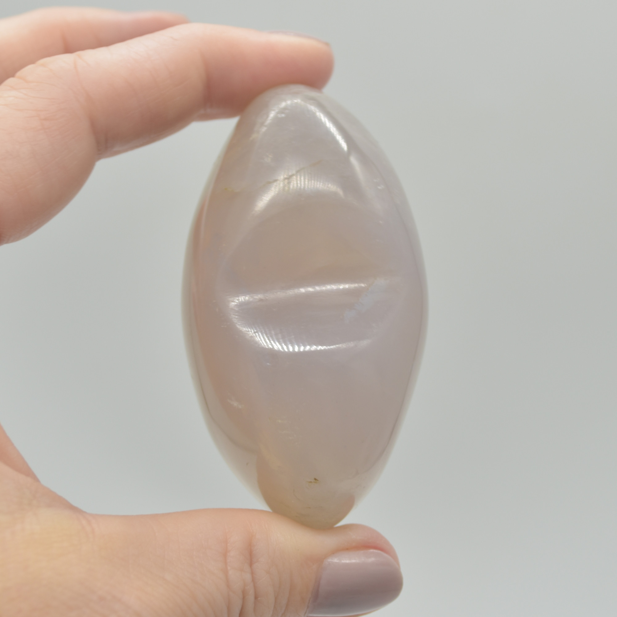 While some specimens are fairly blue, others look brownish, greyish and purplish muddle of colours, or even milky. Blue rose quartz can often be associated with a stone that looks a bit like girasol quartz as well as rose quartz. It may even appear to be different colours depending on the angle.