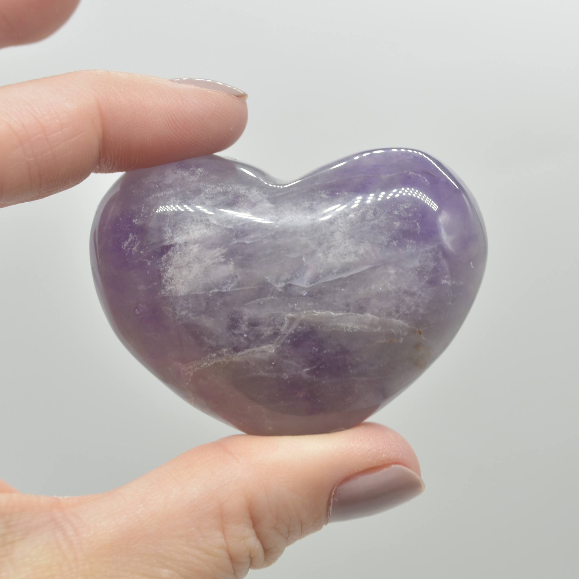 Polished Chevron Amethyst Crystal Puff Heart
