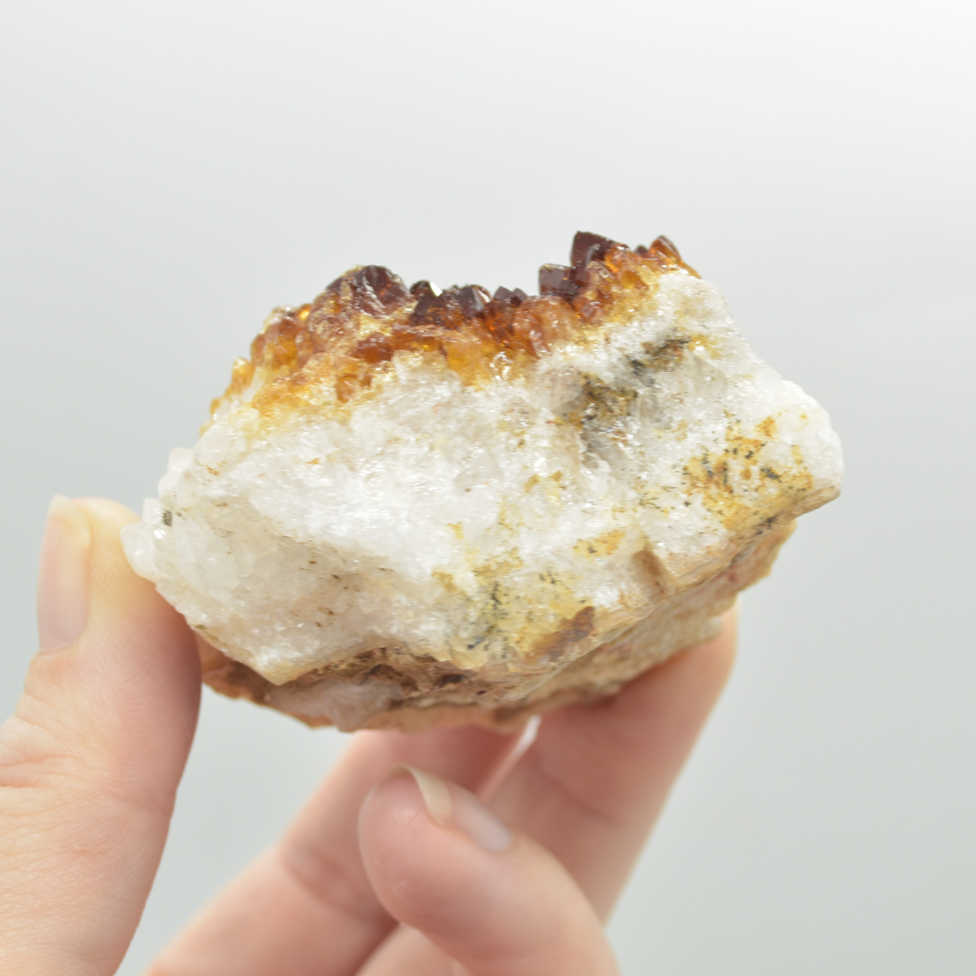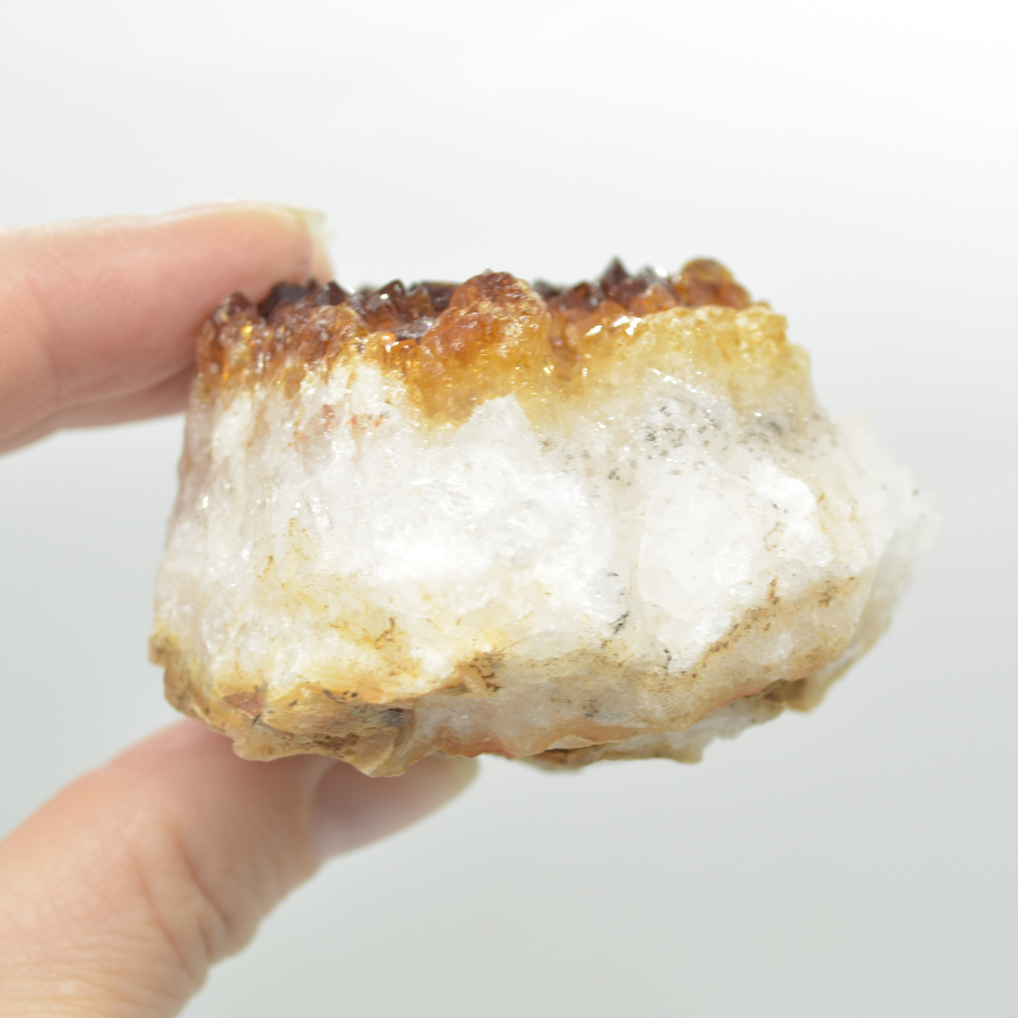 Citrine is commonly produced from heat treated Amethyst to give the vibrant orange / brown colours.