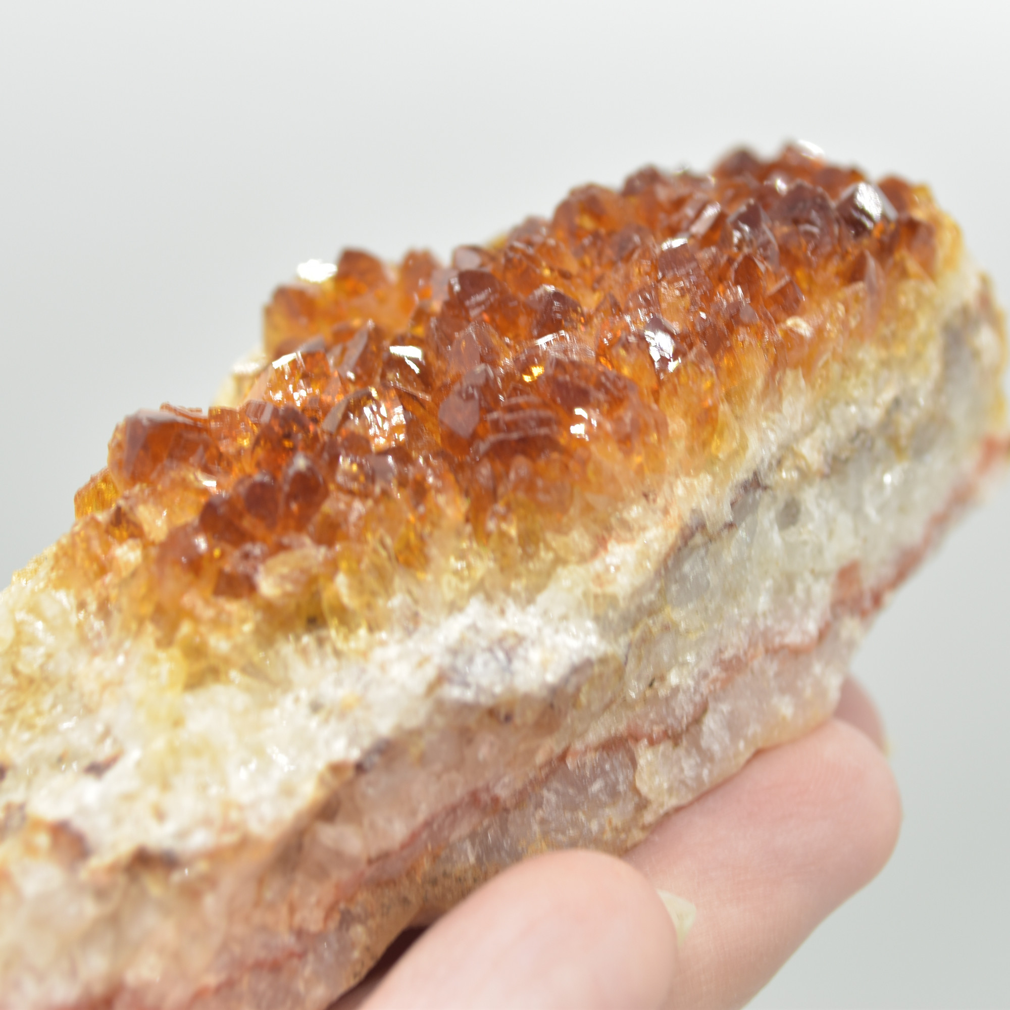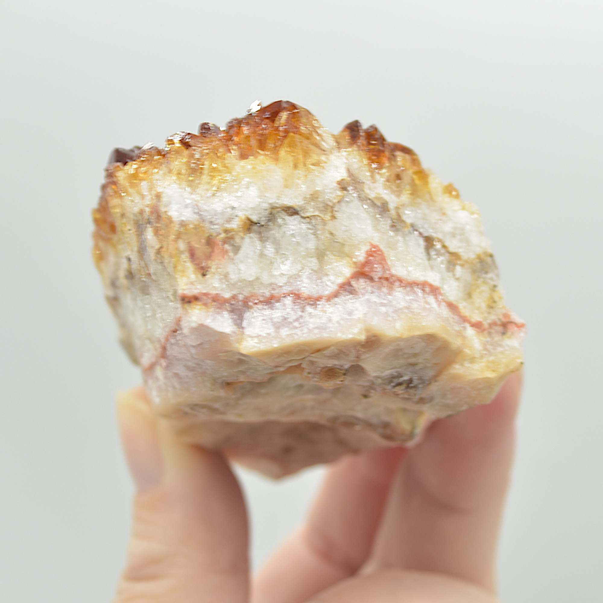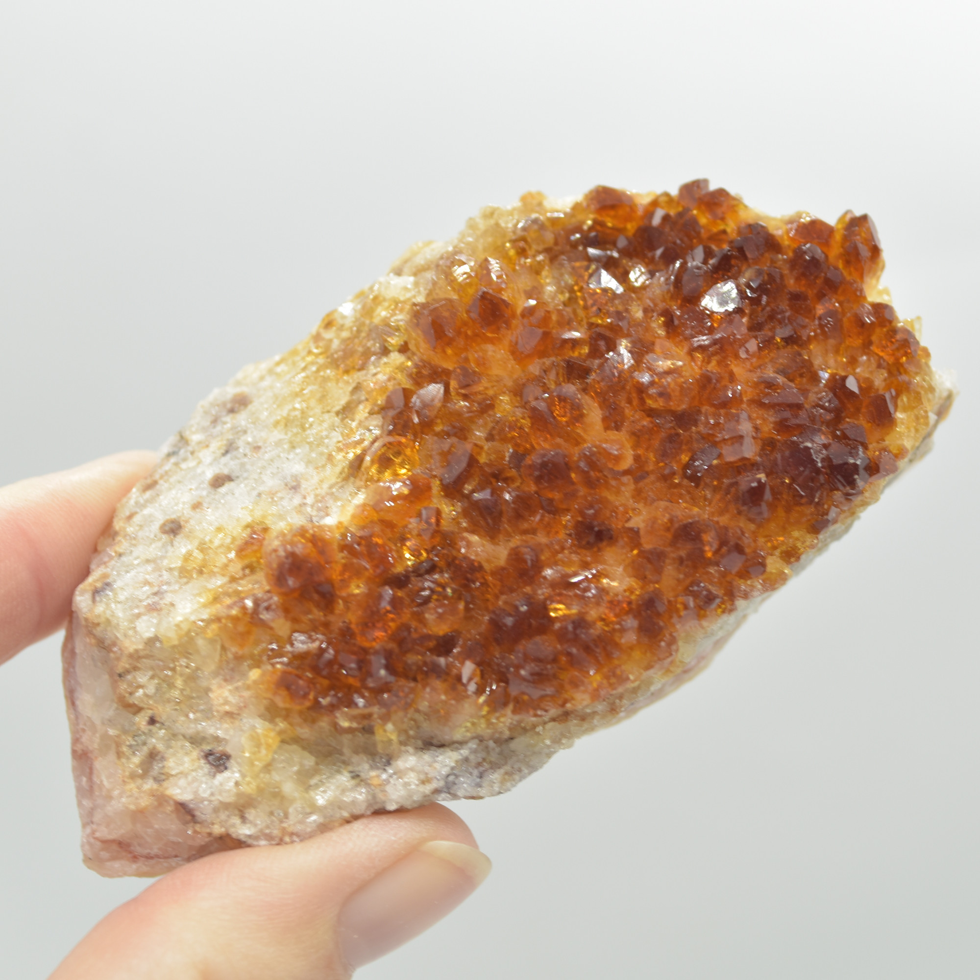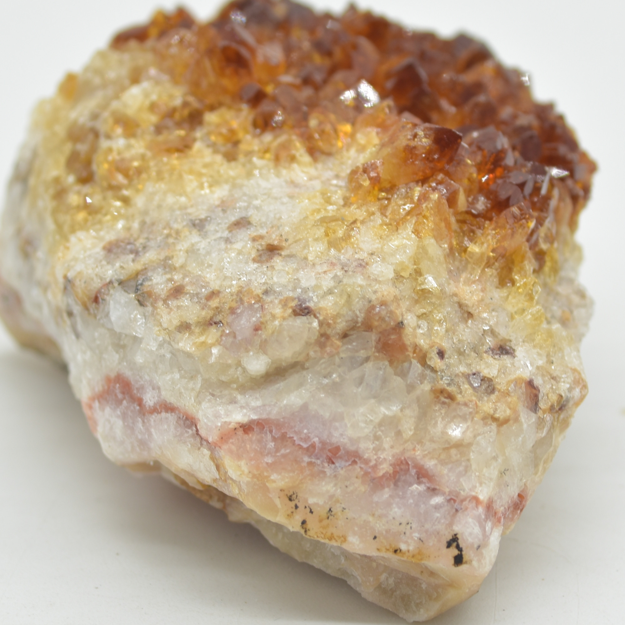 Citrine is commonly produced from heat treated Amethyst to give the vibrant orange / brown colours.