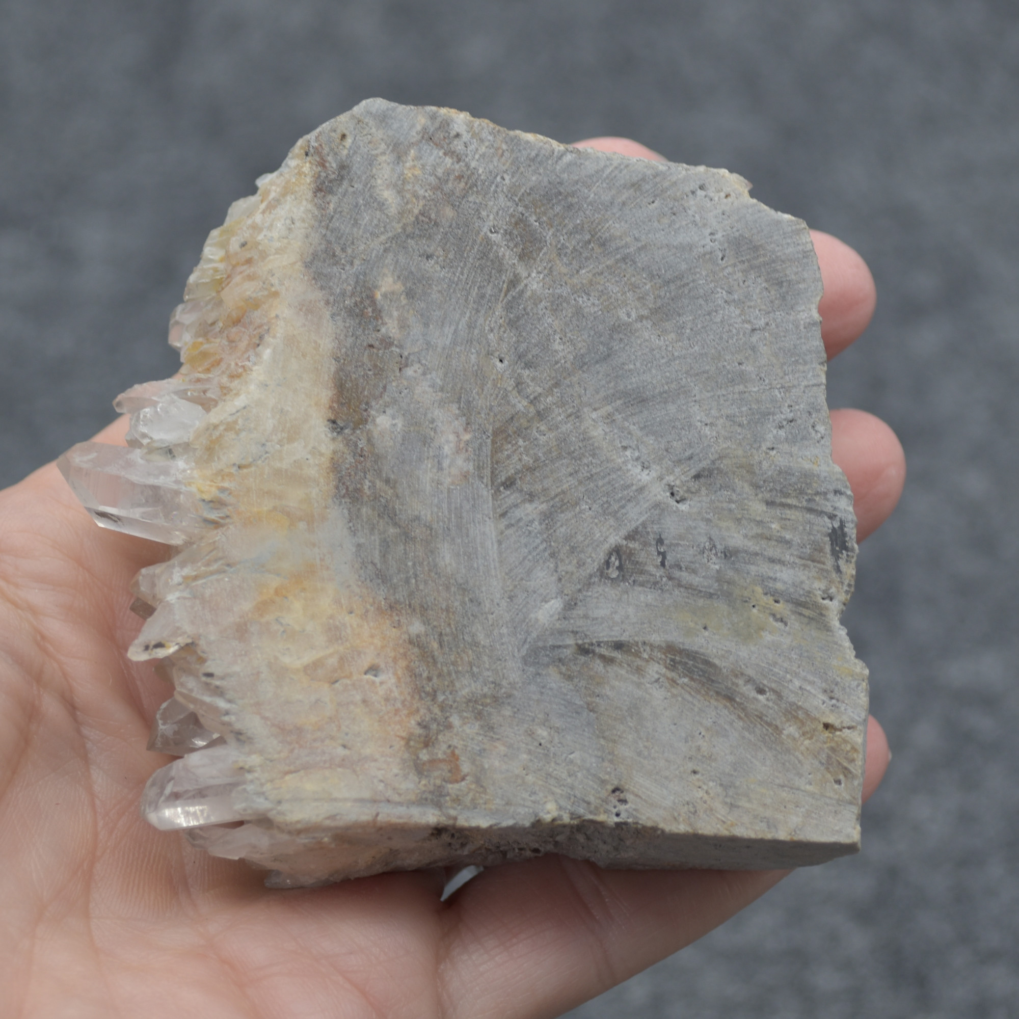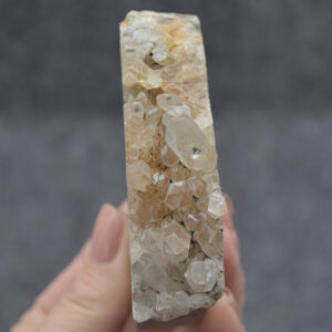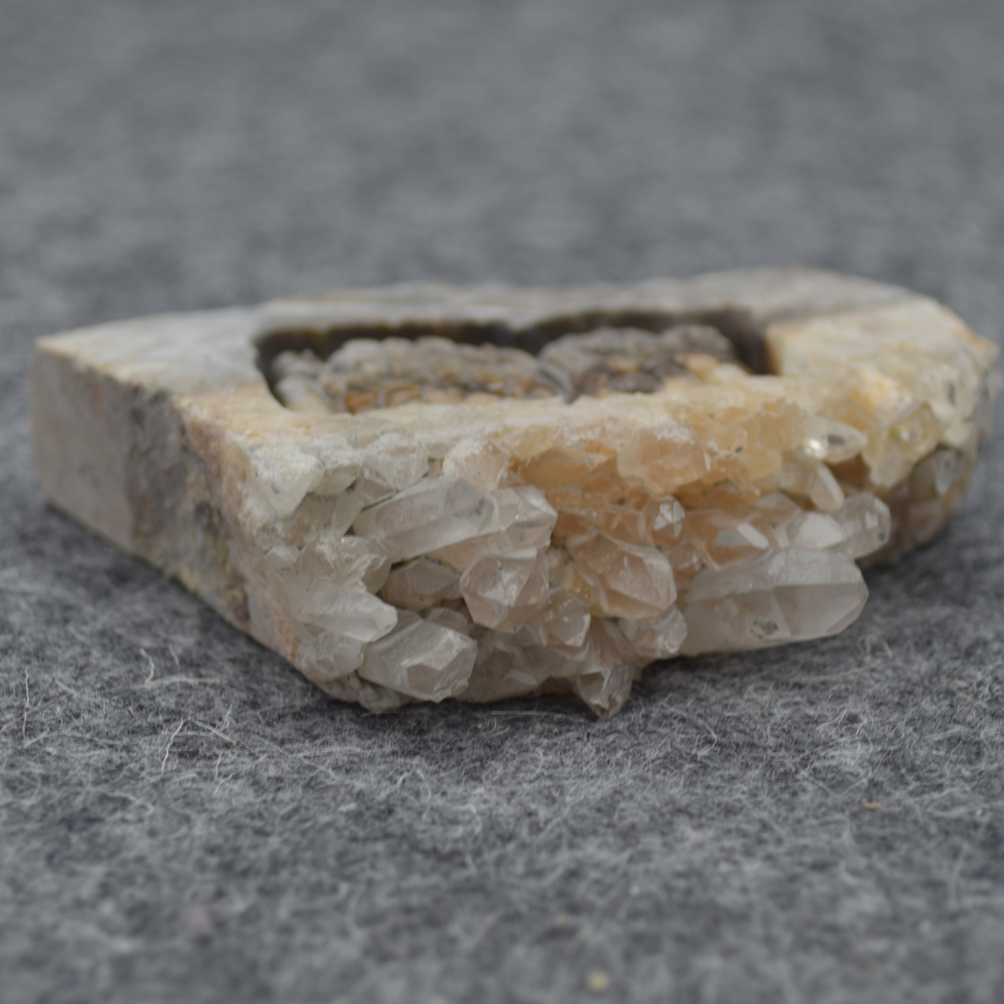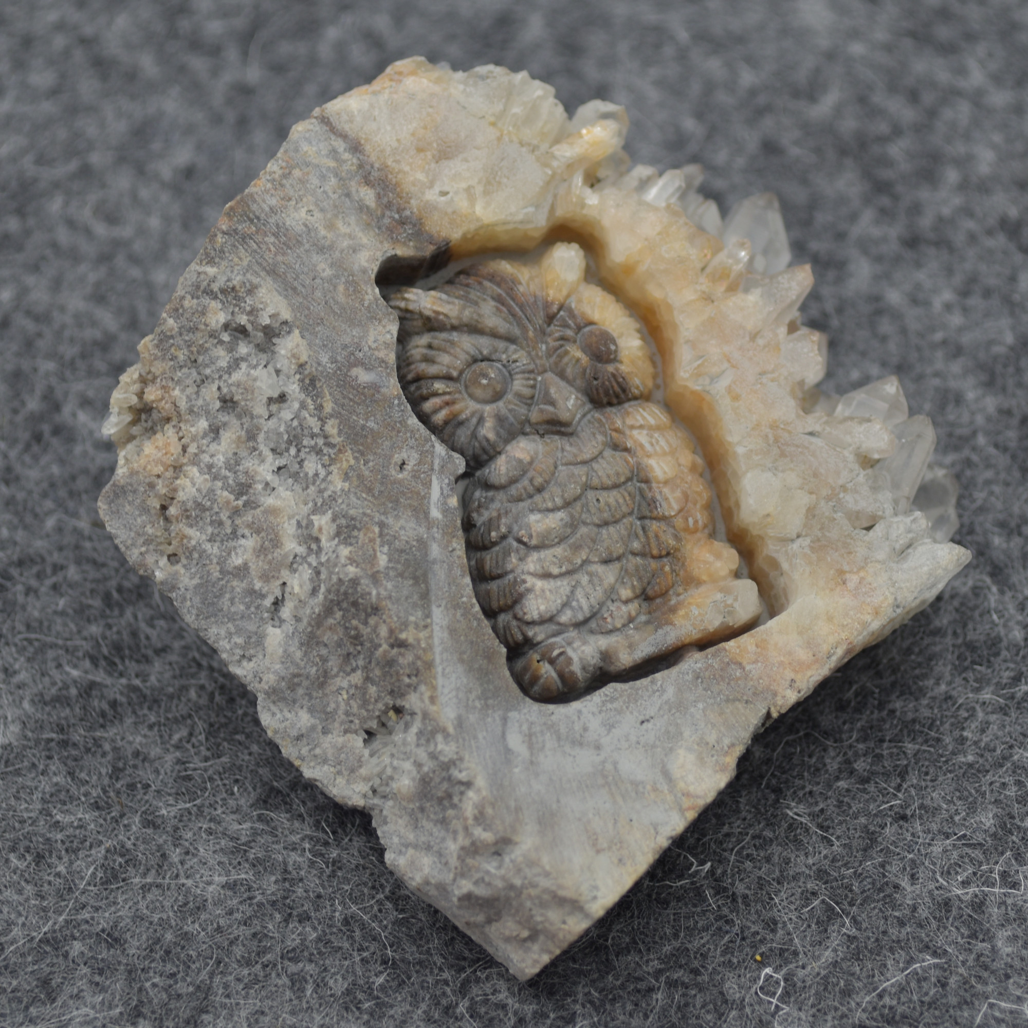 Natural Raw Crystal Quartz Cluster Slice with hand carved Owl