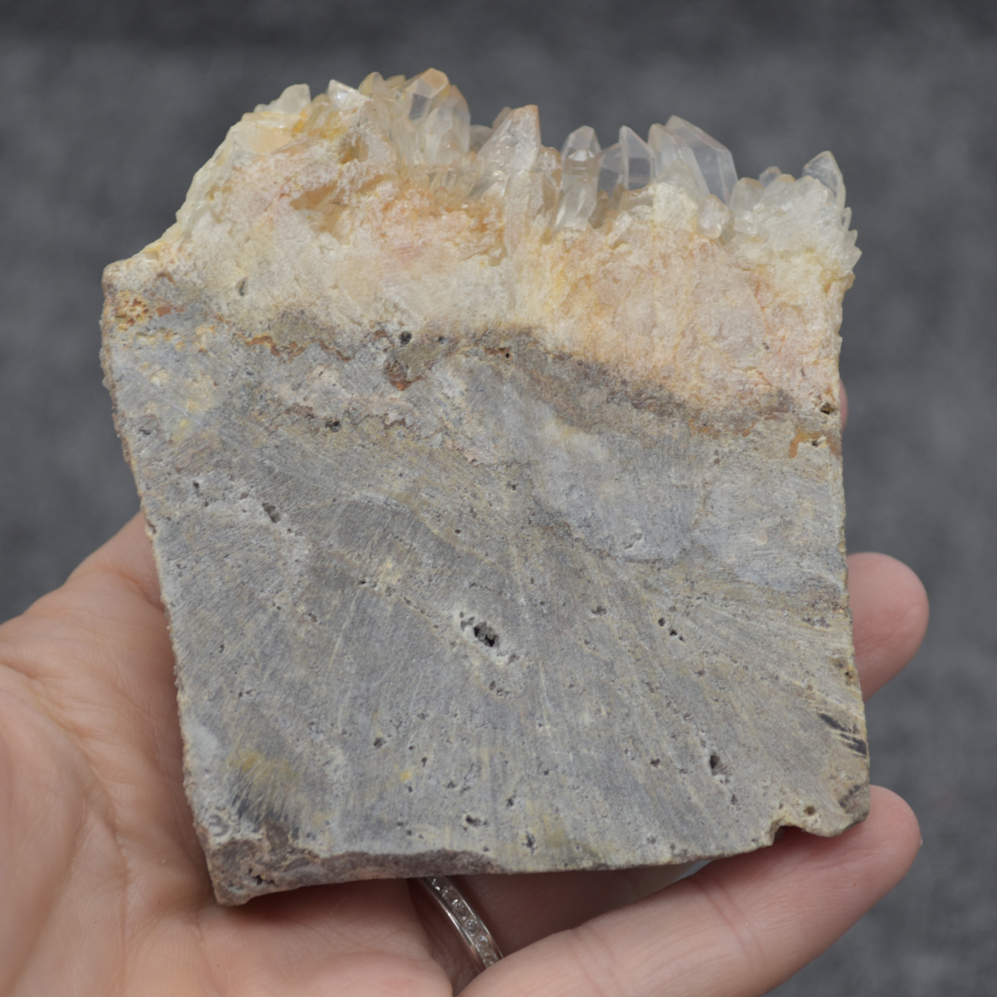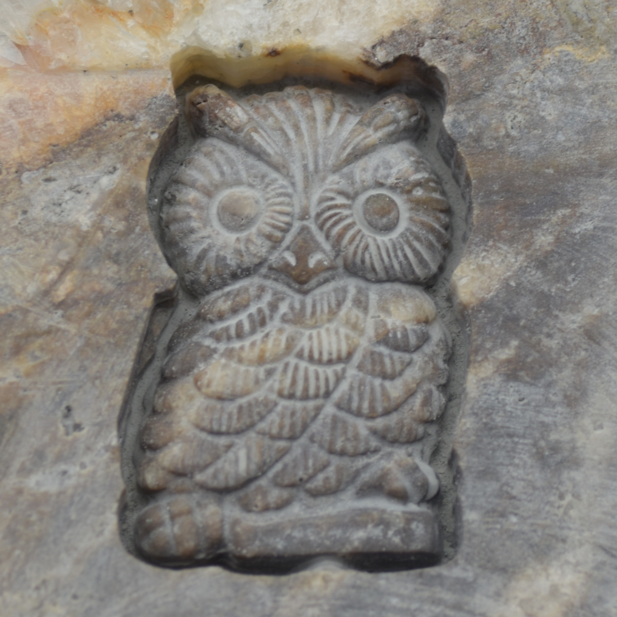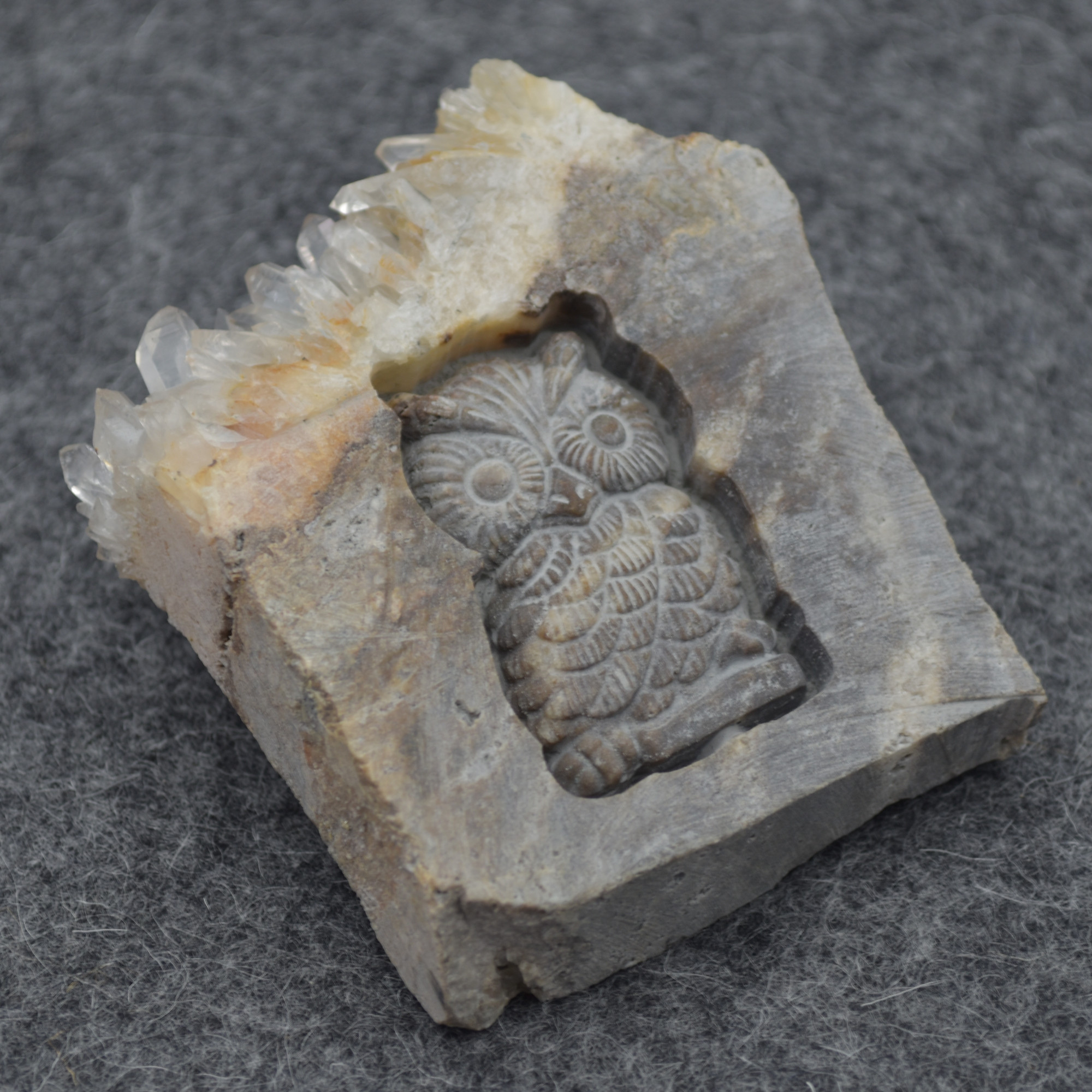 Natural Raw Crystal Quartz Cluster Slice with hand carved Owl