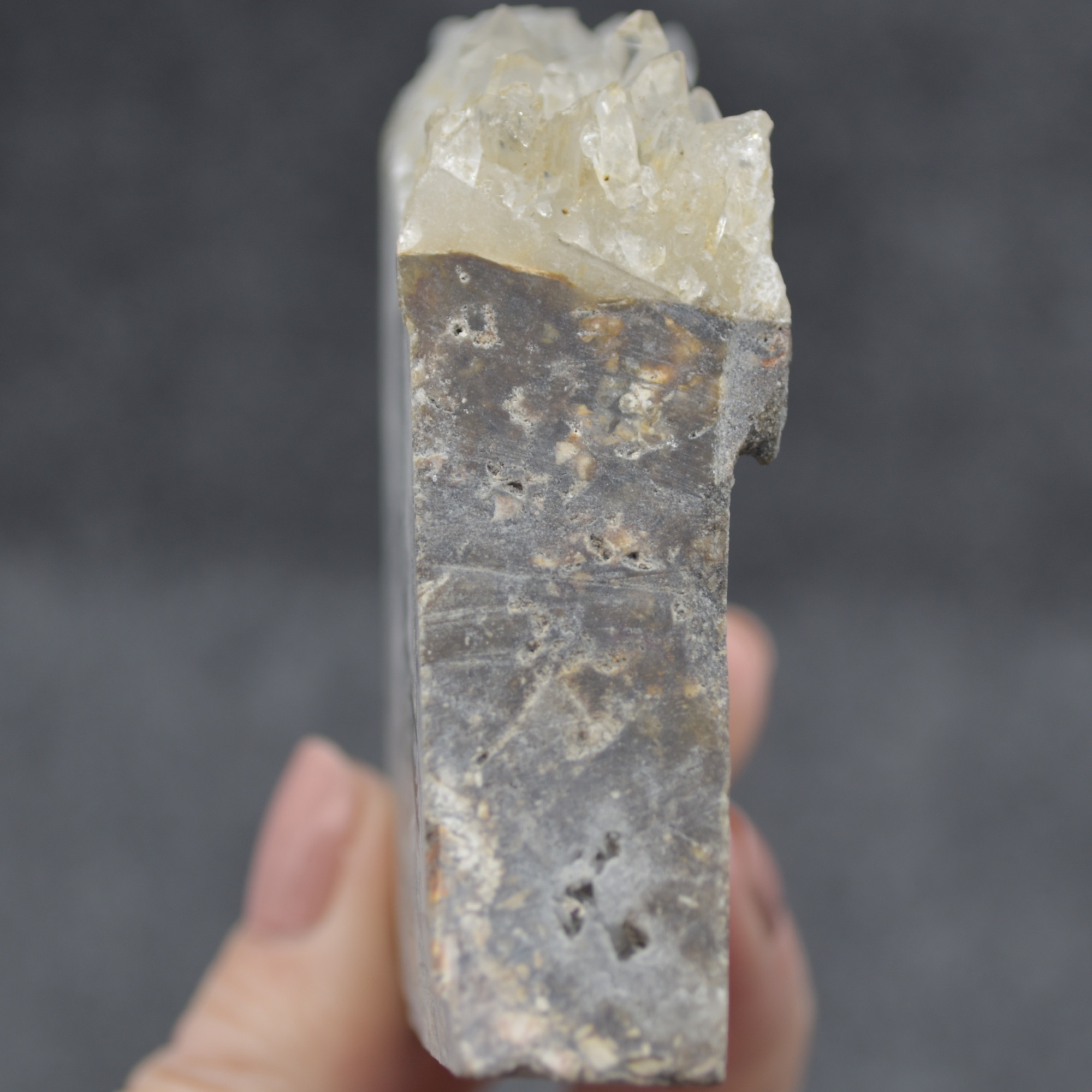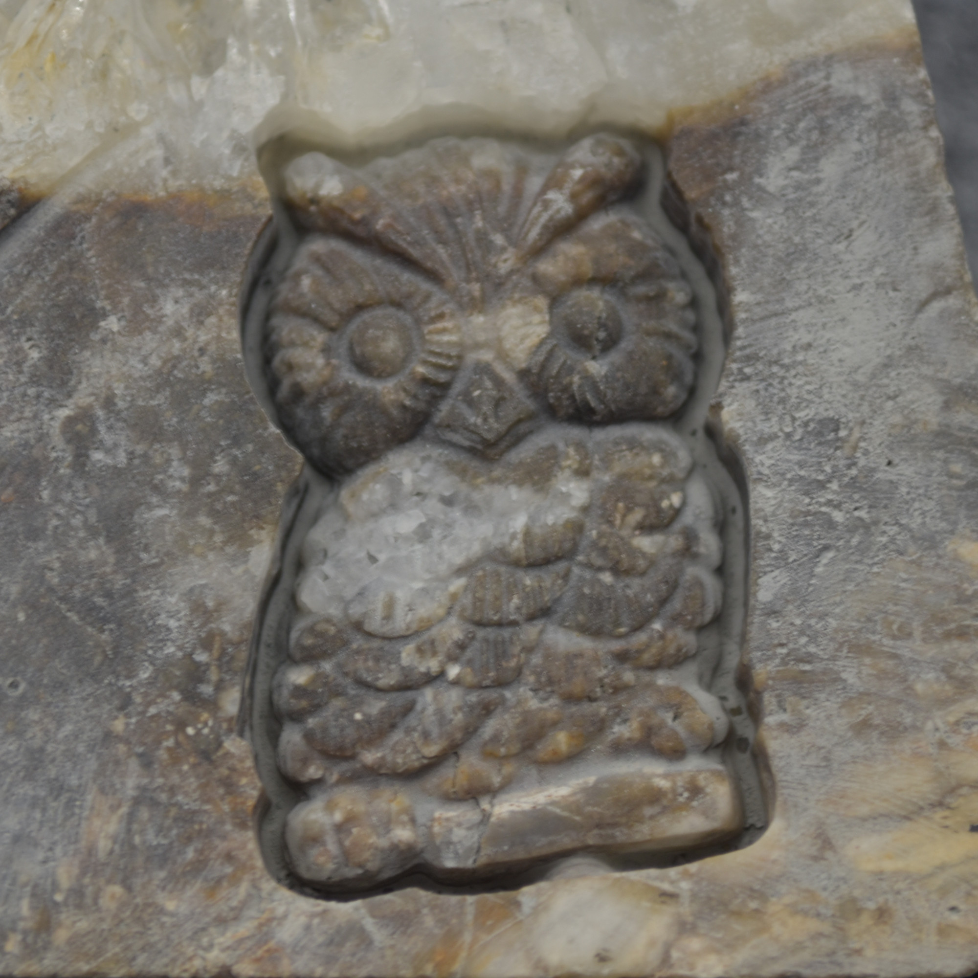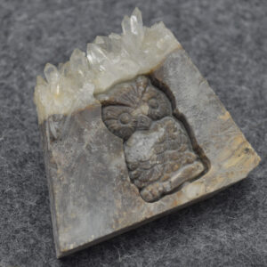 Natural Raw Crystal Quartz Cluster Slice with hand carved Owl