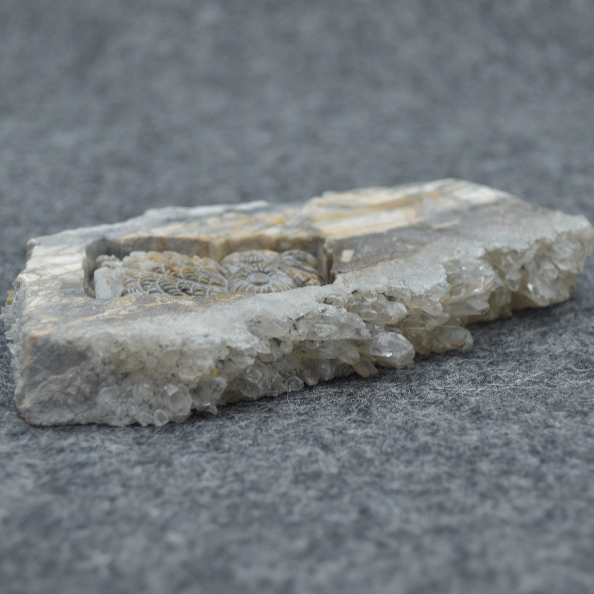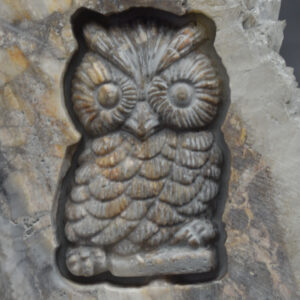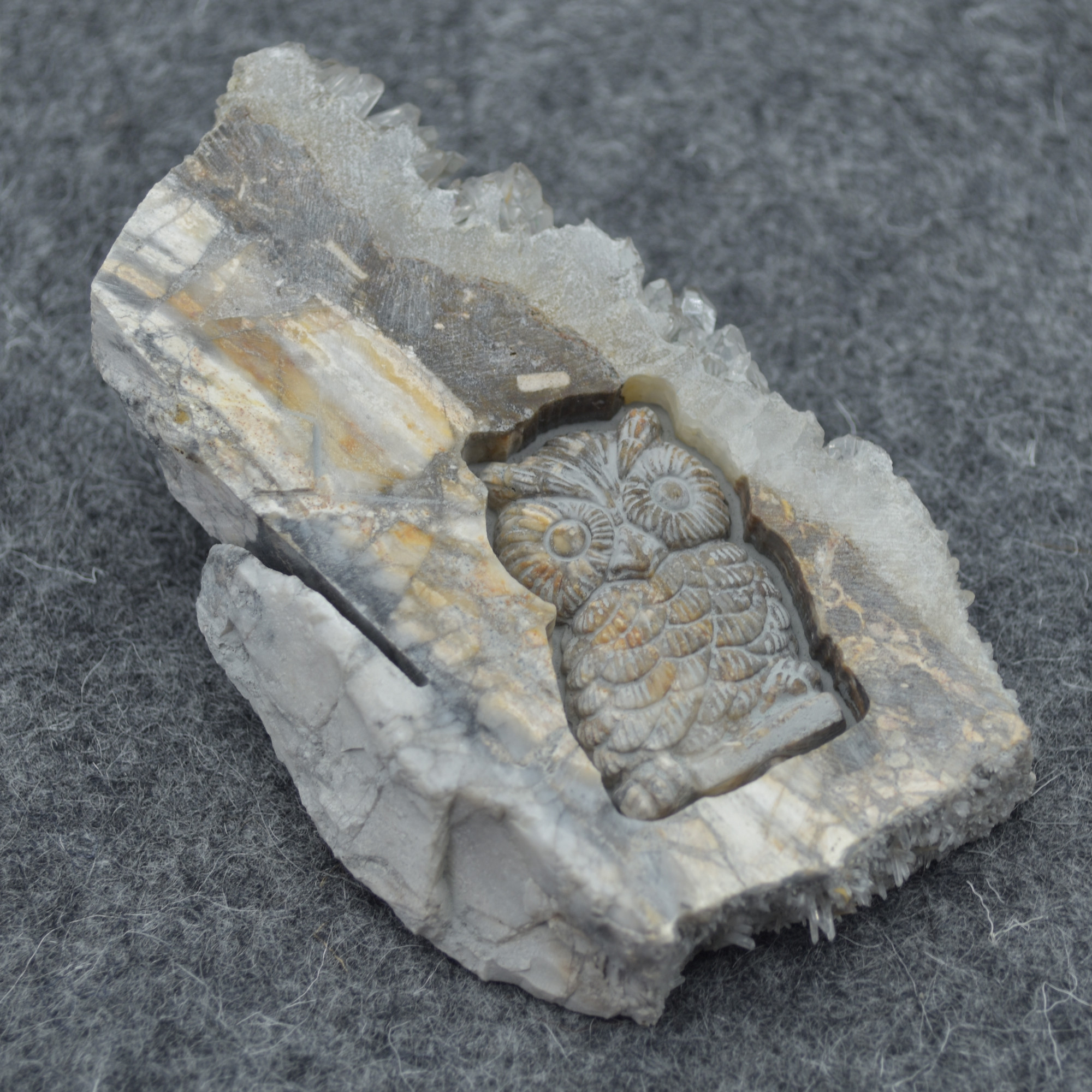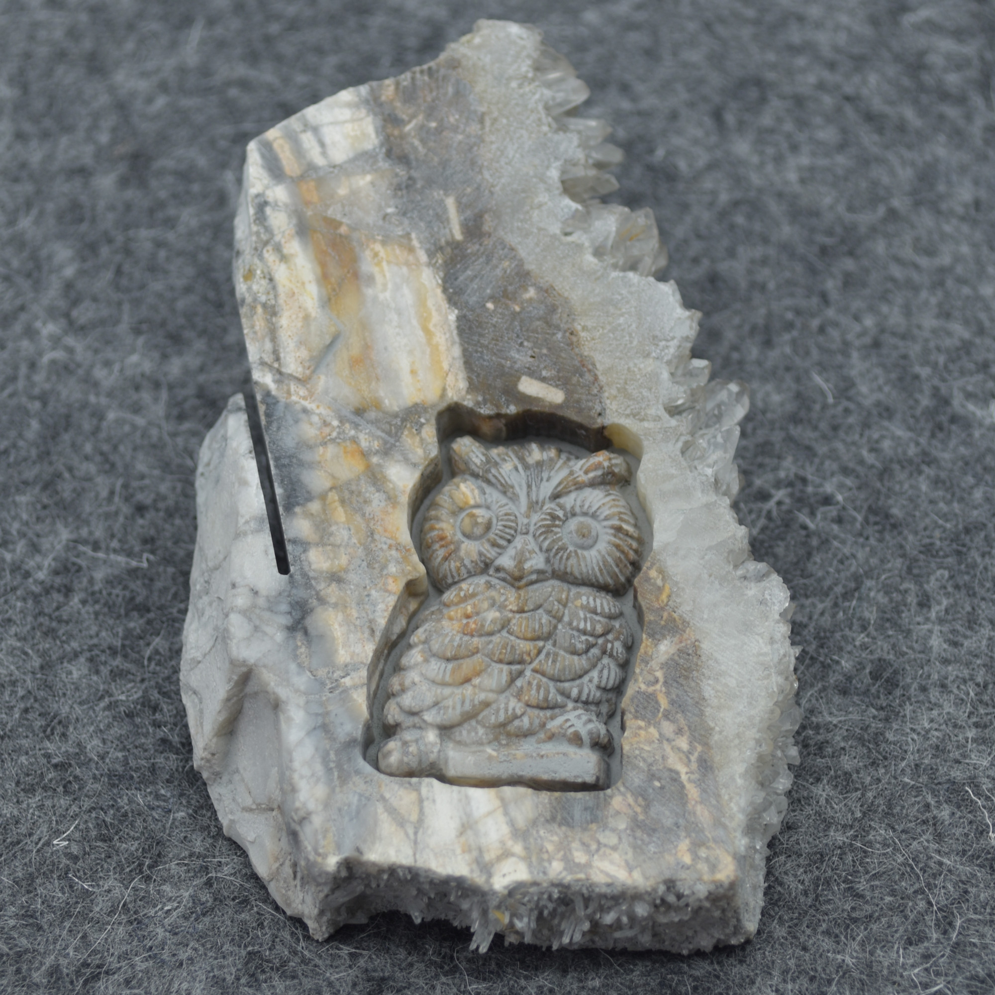 Natural Raw Crystal Quartz Cluster Slice with hand carved Owl