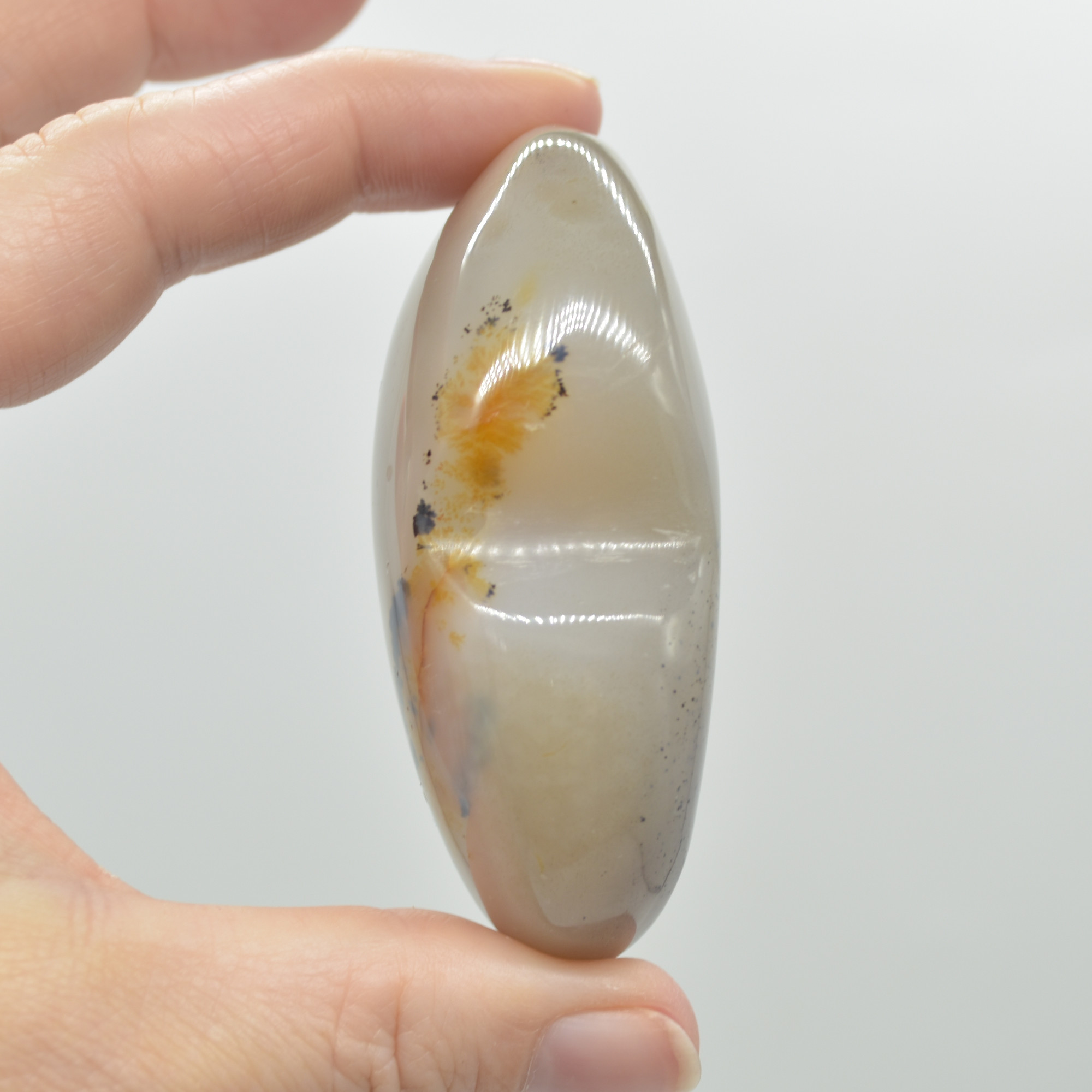 Dendritic agate is a translucent, colourless to whitish-grey variety of chalcedony quartz, easily distinguished by its distinct tree- or fern-like markings known as ‘dendrites’, which are most often brown to black in colour.