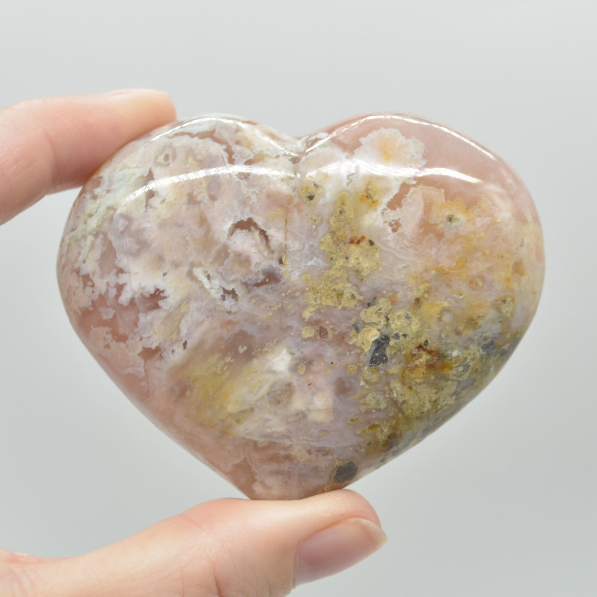 Flower Agate Crystal Puffy Heart – 151 grams – #3A