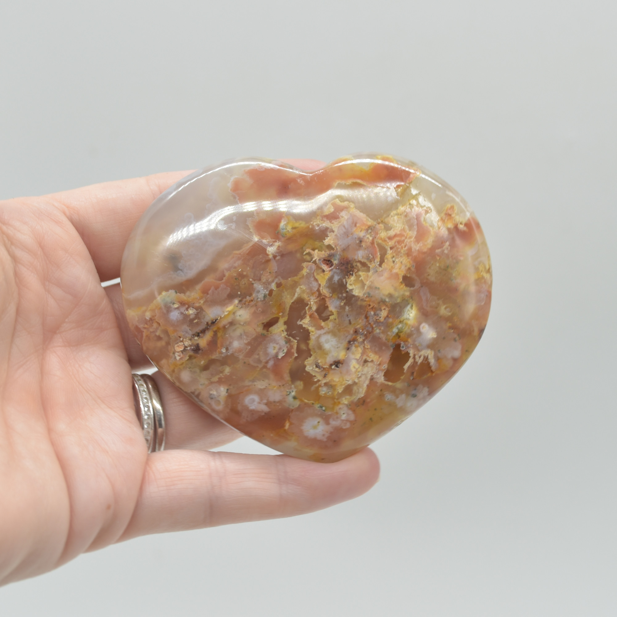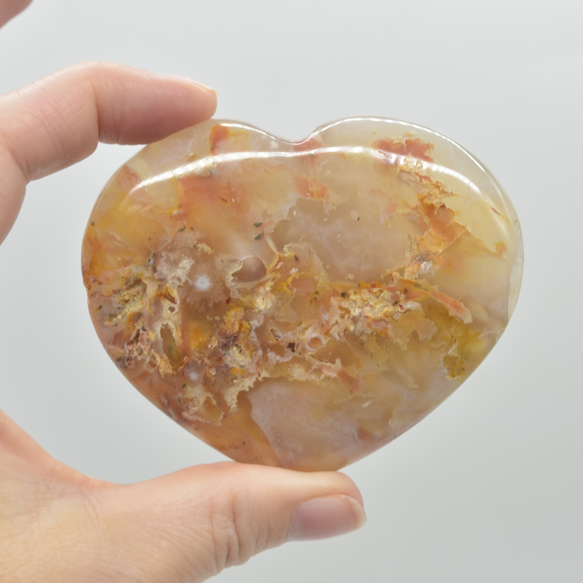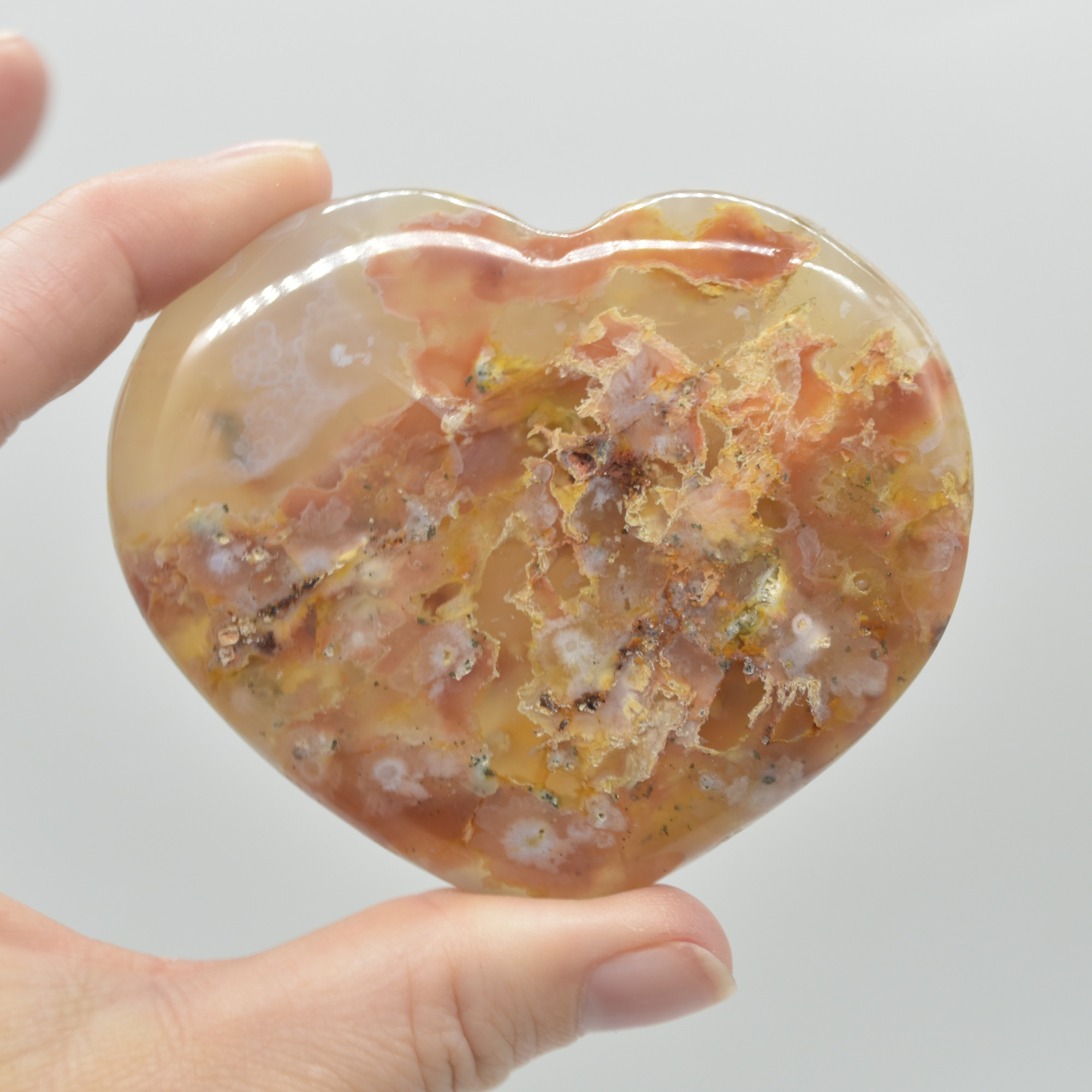 Flower Agate Crystal Puffy Heart – 152 grams – #5A