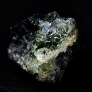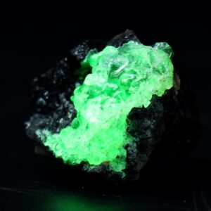 Fluorescent Hyalite Opal Crystal Specimen with Black Tourmaline