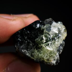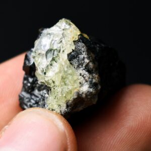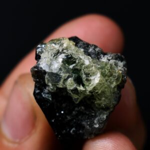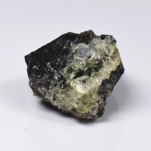 Fluorescent Hyalite Opal with Black Tourmaline – Mineral from Erongo Mountains Namibia, 13 grams