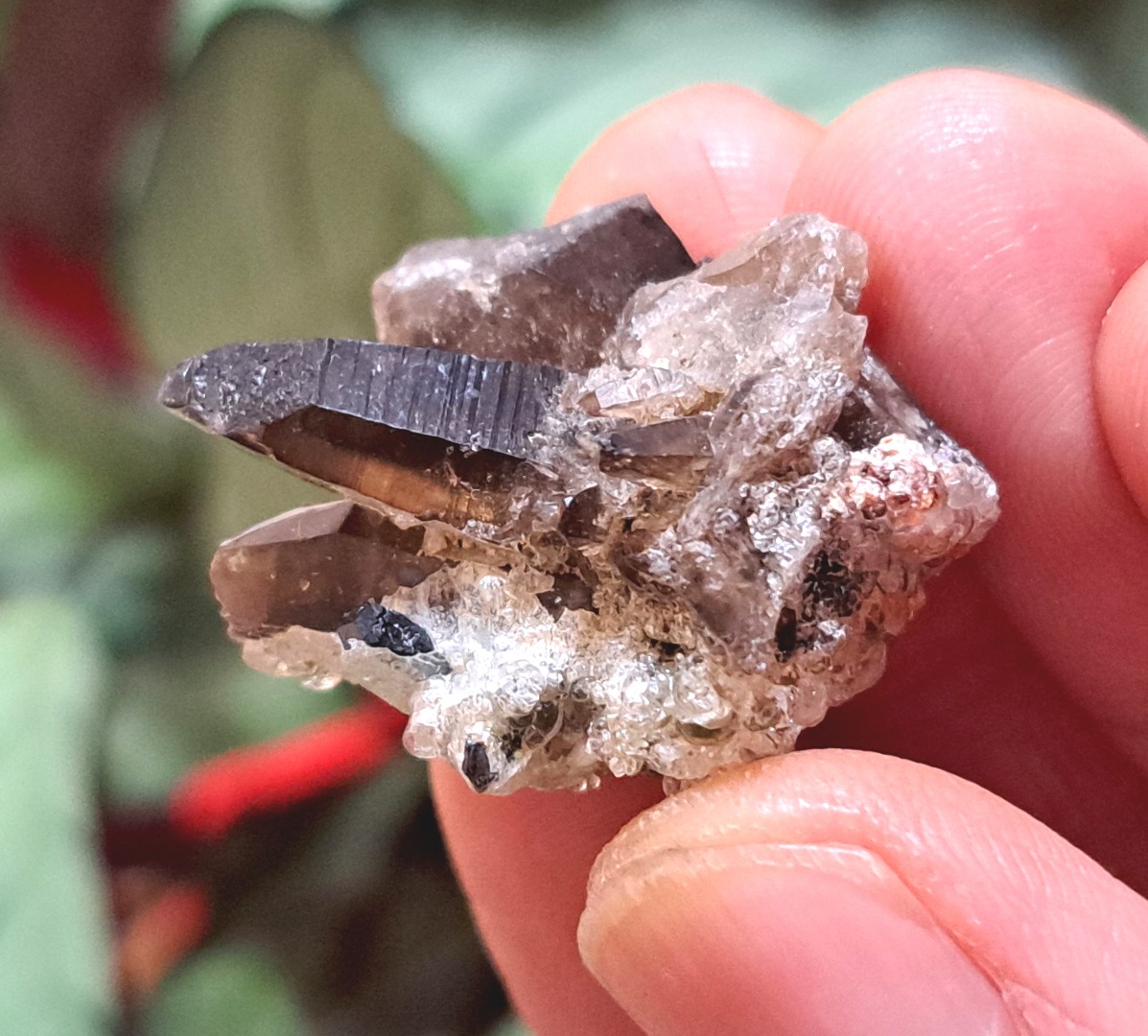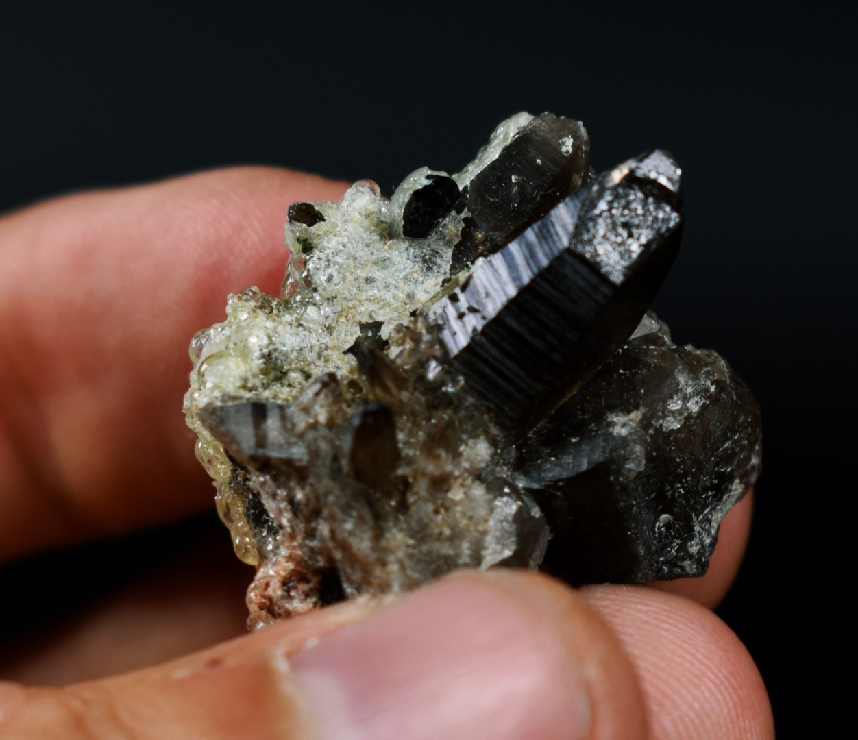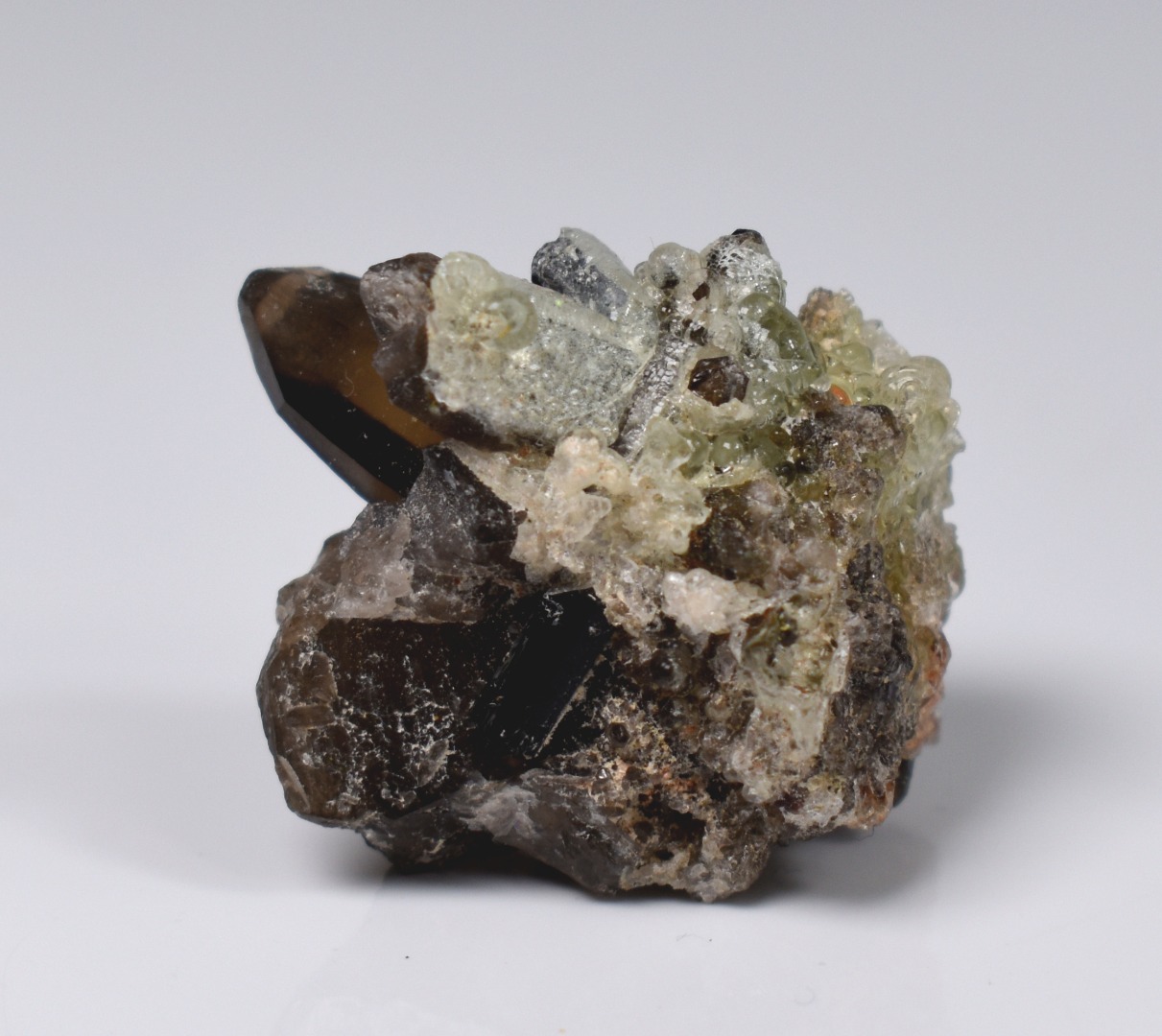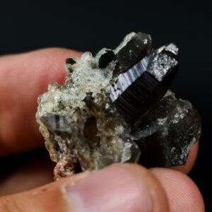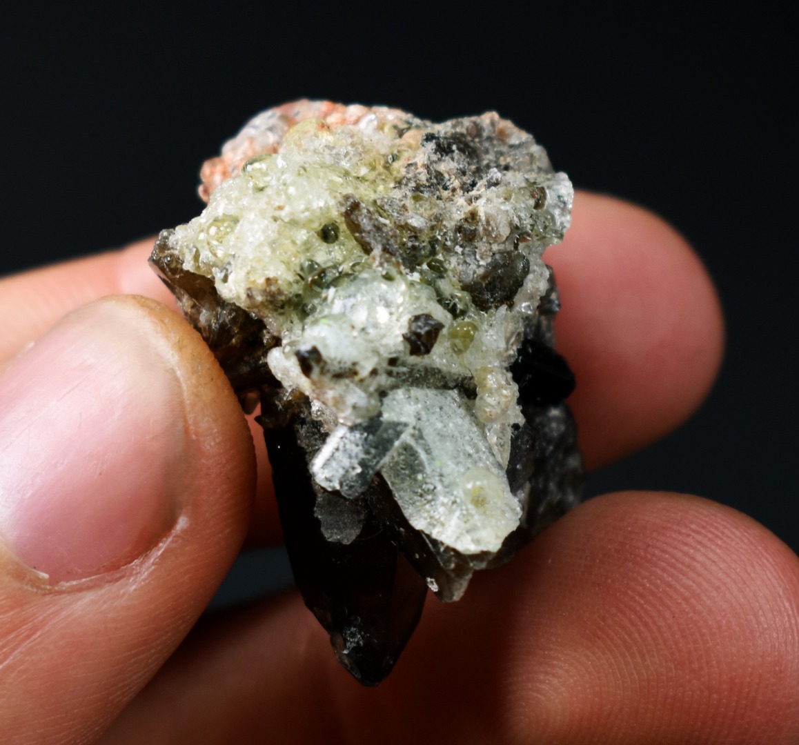 Fluorescent Hyalite Opal with Smoky Quartz, Black Tourmaline – Mineral from Erongo Mountains Namibia, 10 grams