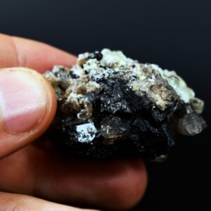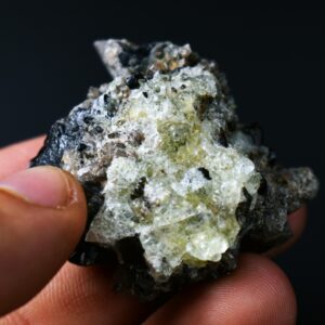 Fluorescent Hyalite Opal with Smoky Quartz, Black Tourmaline – Mineral from Erongo Mountains Namibia, 34 grams