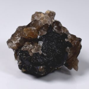 Fluorescent Hyalite Opal Crystal Specimen with Smoky Quartz and Black Tourmaline