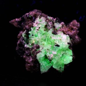 Glows a vivid green under longwave UV light (shortwave UV may also elicit a reaction).